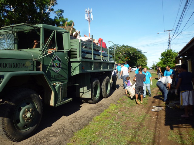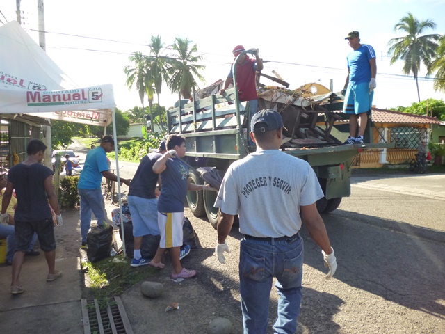 Unidades administrativas de la zona policial de la provincia de Herrera, realizaron una jornada de recolección de basura en la Barriada el Renacimiento, ciudad de Chitré. Las unidades llegaron acompañados de jóvenes de la iglesia evangélica y moradores para llevar a cabo la labor social en donde se sacó todo tipo de Chatarra. Con esta labor hubo un acercamiento con la comunidad y en conjunto con las iglesias evangélicas lograr mantener “Barrios Seguros”. |
