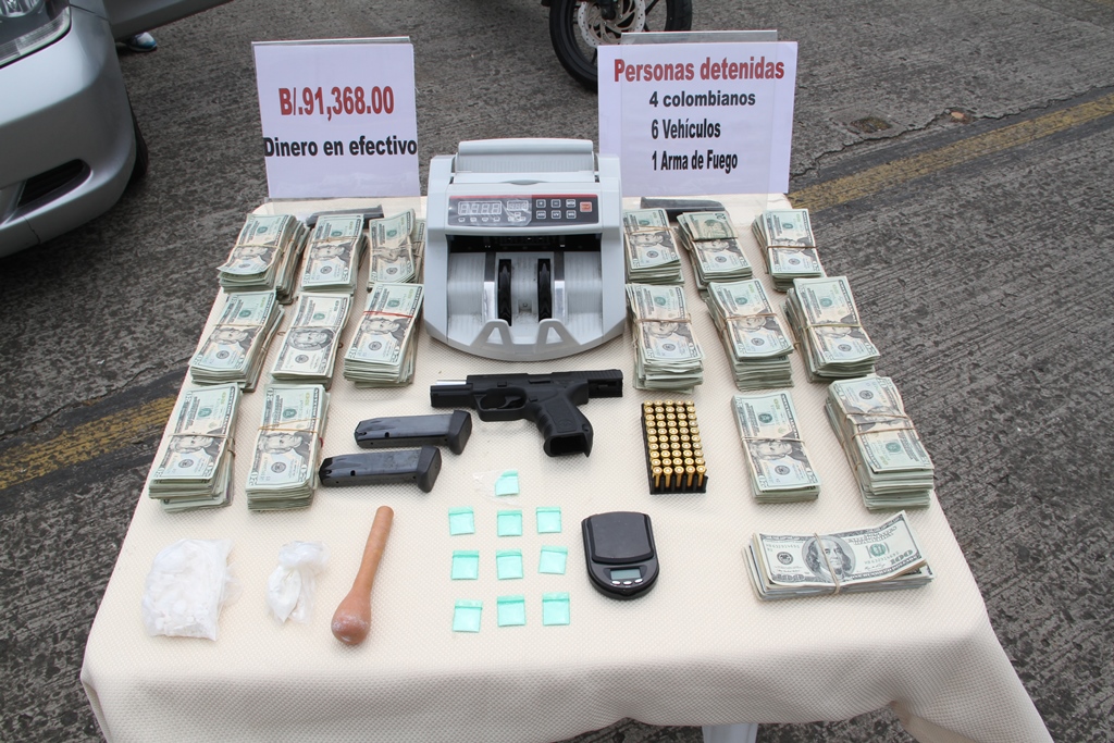 La Policía Nacional ha incautado más de 15.5 toneladas de droga durante el 2014 La lucha contra las organizaciones criminales por parte de la Policía Nacional sigue dando resultados. Esta madrugada en el corregimiento de Juan Díaz, a través de la Dirección de Investigación Judicial (DIJ), se desmanteló una red conformada por colombianos dedicados al tráfico de sustancias ilícitas. “La Operación denominada ‘Octavo’ inició con el desarrollo de tres diligencias de allanamientos, en el sector de San Fernando en el corregimiento de Juan Díaz y en el sector del Cangrejo, dando fue incautado 395 paquetes de cocaína y varios sobres con la misma sustancia”, indicó el comisionado Javier Castillo Subdirector General de la Policía Nacional. A través de esta acción policial realizada en conjunto con la Fiscalía Especializada en Delitos Relacionados con Drogas, se incautó la suma de $91,368.00 dólares en efectivo y una máquina de contar dinero. También se logró la detención de 4 personas de nacionalidad colombiana (tres hombres y una mujer) y la incautación de un arma de fuego 9 milímetro con dos proveedores y 50 municiones sin detonar. Adicional de seis vehículos, de los cuales 2 mantienen confección de doble fondo. La droga se mantenía oculta en tres puntos, siendo estos: en el interior de un taller de reparación de autos, en el interior de una residencia y en el interior de un apartamento en el Cangrejo. La Policía Nacional en aras de continuar su lucha contra el tráfico de drogas y la delincuencia organizada, mantendrá estos operativos para mantener "Barrios Seguros". |