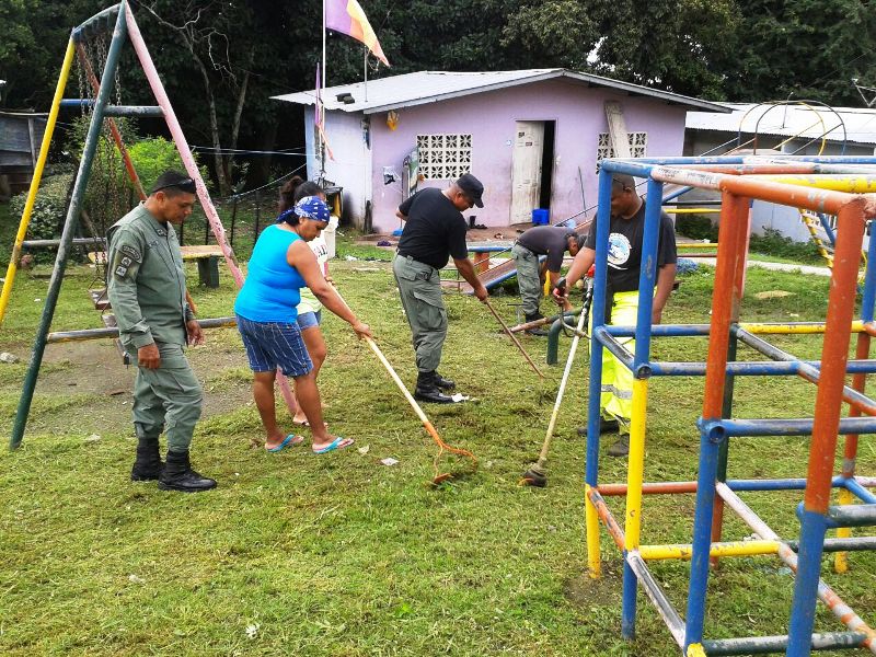 Unidades Policiales llevaron a cabo una limpieza en unos de los parques y alrededores del sector del Mirador de Torrijos Carter, corregimiento de Belisario Frías, ya que este se mantenía en medio de un herbazal y los niños no lo podían utilizarlo. A tempranas horas del día de hoy se inició esta jornada de limpieza, donde algunos residentes se unieron al igual que los niños. Pasadas unas horas pudieron disfrutar de su parque limpio y en mejores condiciones. También moradores aprovecharon la ocasión para reunirse con el capitán Samuel Acosta, quien se mantenía al mando de esta actividad para exponerle un proyecto que la comunidad quiere implementar. |