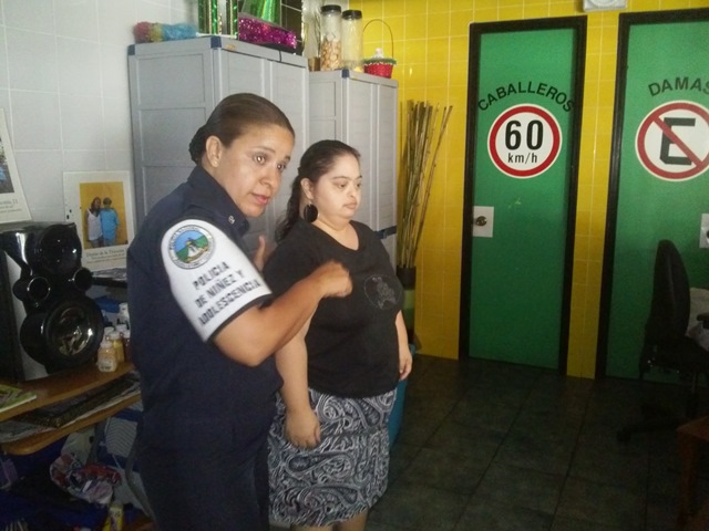 La sargento Beatriz Pimentel estuvo a cargo de la actividad a favor de 30 jóvenes de esta fundación que busca integrarlos a la sociedad.