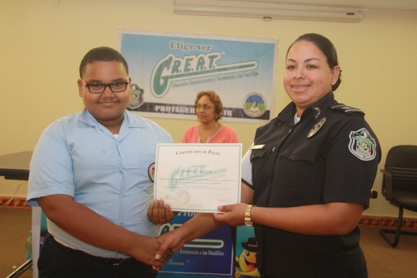 Este jueves 23 de octubre se llevó a cabo una ceremonia de graduación de más de 200 alumnos del nivel secundario del Instituto Comercial Panamá, quienes completaron el programa de Educación y Entrenamiento en Resistencia a las Pandillas (GREAT, por sus siglas en inglés). En este acto estaban presentes unidades de la Policía de Niñez y Adolescencia de la zona policial Metropolitana Oeste, instructores, estudiantes y docentes. El objetivo del programa GREAT es prevenir el delito, la violencia y la participación en pandillas de los jóvenes, al tiempo que desarrollan una relación positiva entre la Policía Nacional, las familias y los jóvenes para crear comunidades más seguras. La Policía Nacional ha brindado apoyo al programa GREAT, proporcionando personal y todas las herramientas para el desarrollo de la actividad que busca involucrar a los padres de familia, en el programa GREAT que inició hace cuatro meses. Los Policías Instructores en este programa son la teniente Stephanie Anorio, la sargento Beatriz Pimentel, y el sargento Gregorio González.