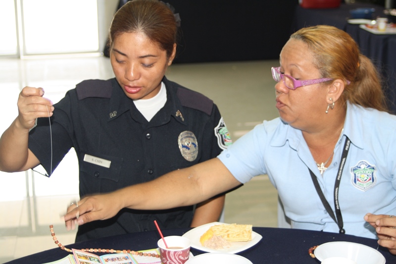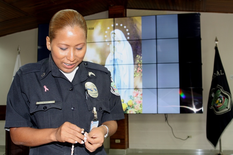 Misioneras de la Parroquia San Francisco de la Caleta, brindaron instrucciones a veinticinco unidades policiales sobre cómo confeccionar un Rosario, en la sede principal de Ancón en celebración al mes del Rosario. Esta instrucción religiosa fue organizada por el departamento de Capellanía de la Policía Nacional con miras a fortalecer la fe e interés de las unidades policiales por la oración. De igual manera, buscan motivar a los policías a practicar más la oración en familia y en comunidad. “No hay nada que pedido con fe no sea concedido”…el rosario es el medio para entablar ese tiempo prefecto para hablar con Dios y no apartarse del camino correcto.