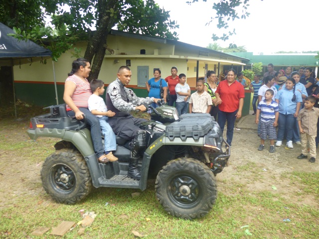 Momentos de alegría vivieron más de 300 niños y adolescentes, todos estudiantes del Instituto Panameño de Habilitación Especial en Veraguas, con unidades de la Policía Nacional, en sus 45 aniversarios. “Para ejercer una influencia benéfica entre los niños, es indispensable participar de sus alegrías”, inspirados en esta frase unidades de la Policía de Niñez y Adolescencia, Linces, GAR, Policía Comunitaria, todas perteneciente a la zona de policial de Veraguas, alegraron y compartieron con el estudiantado del IPHE. En esta actividad en la que se obsequiaron juguetes, canastitas de golosinas, participaron unidades caninas. Además los presentes pudieron apreciar las habilidades y destrezas de los canes y las payasitas del COIF “Mi Alegría" contagiaron con su carisma y divirtieron a cada niño allí presente. El Comisionado Gilberto Cuevas, jefe de la novena zona policial, dijo sentirse muy complacido al ver reflejado en los rostros de los pequeñines su alegría y entusiasmo. Manifestó que dentro de las funciones que realizan los miembros de la Policía Nacional están el practicar solidaridad con quienes los necesitan, tomando en cuenta que son el futuro del país. Finalmente, la profesora Nieves Luque, Directora del I.P.H.E agradeció a las unidades policiales por tal noble gesto con todos los niños enfatizando en que ellos son la esperanza del futuro. |