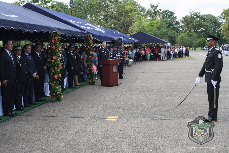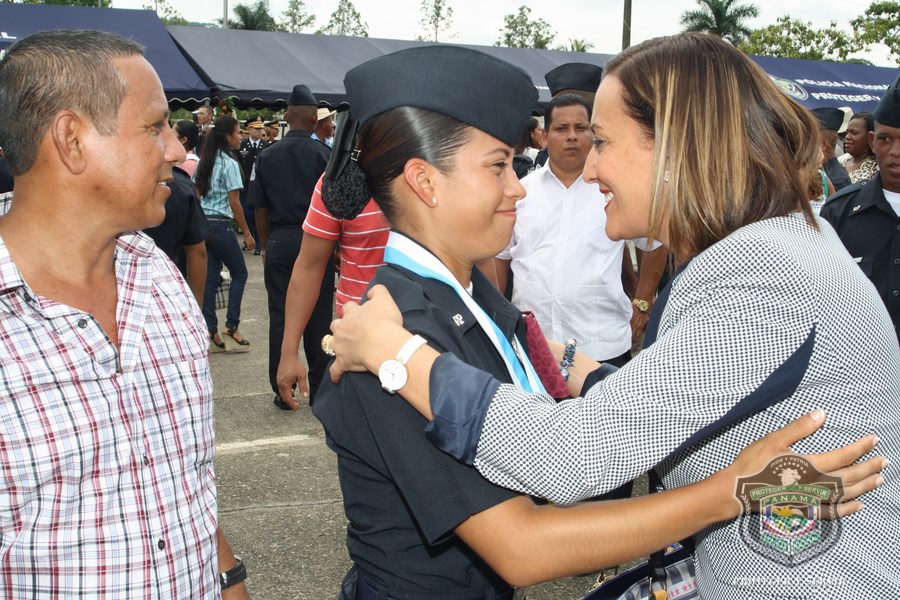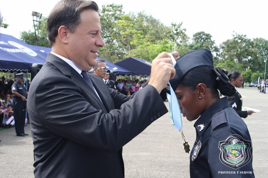 “Es un honor para mí acompañarlos a ustedes, futuros líderes de esta Policía que han tomado el camino correcto de darle seguridad al país en un acto tan histórico como este” enfatizó el Presidente Juan Carlos Varela, durante la ceremonia de graduación de la septuagésima cuarta promoción “General Buenaventura Correoso, realizada en el Instituto Superior Policial (ISPOL), ubicado en Gamboa. En tanto, el director de la Policía Nacional, Omar Pinzón se mostró satisfecho con estos 219 jóvenes, formados bajo los parámetros que corresponden a la profesión policial, con bases técnicas, legales y de relaciones humanas que integran el perfil policial moderno, procurando hacer de cada uno de ellos el mejor policía que merece la nación. “Esta septuagésima cuarta promoción ha de unirse al gran compromiso que, bajo instrucciones precisas del Señor Presidente y del señor Ministro de Seguridad Pública, Rodolfo Aguilera, llevamos adelante en la Policía Nacional, con el fin de cumplir con el mandato de la Constitución”, dijo Pinzón. Este grupo de agentes con deseos de servir a la Patria, se formaron por ocho meses en el ISPOL, obteniendo el título en Técnico Superior en Seguridad Pública y Técnico en Investigación Criminal. Una vez graduados pasarán a reforzar la vigilancia y otras acciones preventivas encaminadas a luchar contra la delincuencia y a seguir garantizando la tranquilidad de todos los ciudadanos. El director Pinzón, le entregó al Primer Mandatario una de las 100 armas destruidas recientemente bajo el programa Barrios Seguros, con más oportunidades y manos firmes, como muestra del compromiso de seguir luchando por el país” En el acto se hizo entrega de medallas al mérito académico y obsequios a los tres primeros puestos de honor; correspondiéndole la distinción a las agentes Yarineth Gálvez Batista, Michelle Hamilton y Eneida Toro Los recién juramentados, fueron instruidos en el Instituto Superior Policial “Presidente Belisario Porras”, en Doctrina y Ética Policial, Seguridad Ciudadana, Derechos Humanos, entre otras materias.