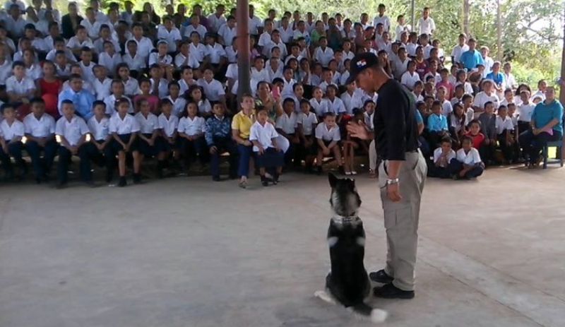 Conmemorando el "Día del Estudiante", el Grupo Juvenil Canino (GRUJUCAN) de La zona policial de la provincia de Chiriquí, realizó el pasado viernes 24 de octubre del presente año, una presentación canina en la Escuela San Cristobal, ubicada en el distrito de David. El Grujucan, al mando del sargento 1ro. Héctor García, deleitaron a más de 600 estudiantes de este centro educativo. Los niños y maestros disfrutaron de estas presentaciones y aplaudieron las diferentes demostraciones como son de obediencia básica avanzada, trucos, pistas de agilidad y habilidades que tienen estas mascotas, dándole la importancia y el valor que poseen los animales. |