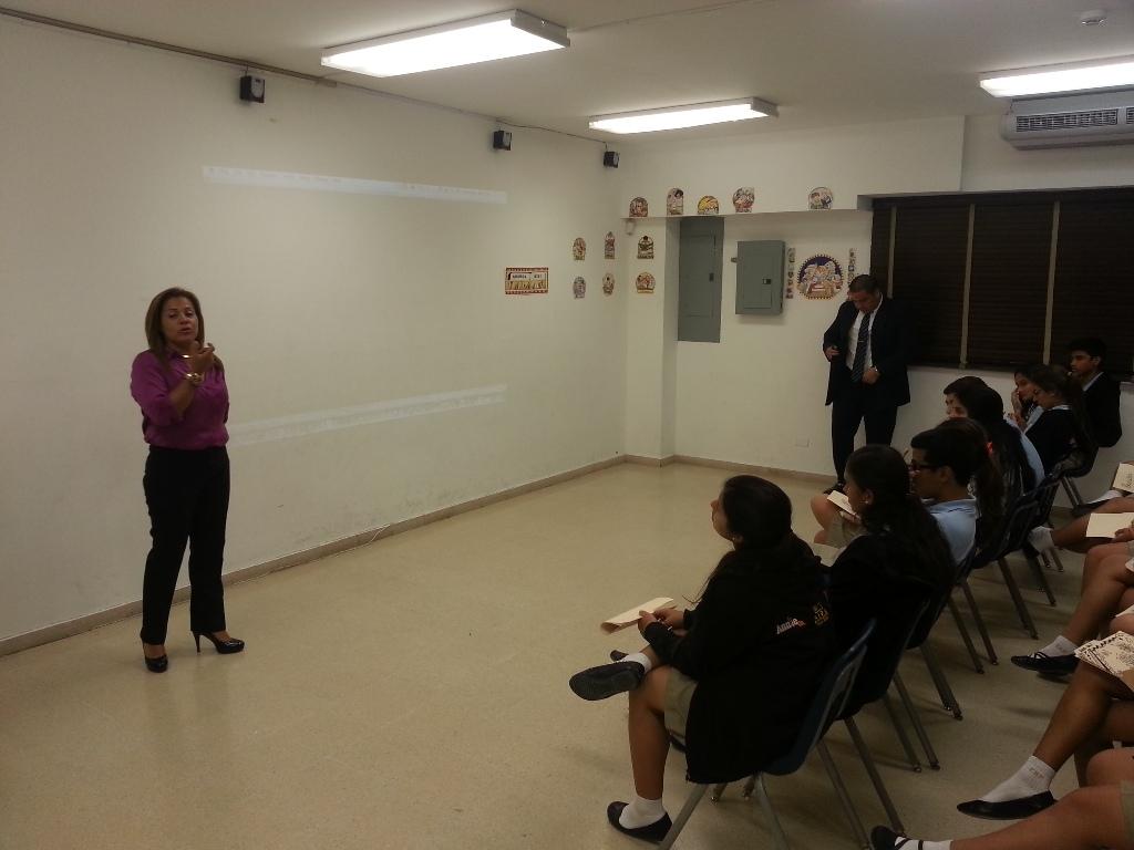 Más de 50 estudiantes fueron capacitados la mañana de este martes 28 de octubre de 2014, por unidades de la División de Delitos Cibernéticos, de la Dirección de Investigación Judicial de la Policía Nacional, referente a la seguridad informática. Las unidades uniformadas orientaron a los estudiantes sobre el uso de las redes sociales, el cuidado y los riesgos que puede representar el mal uso de estas. De esta misma forma, se les recomendó a los jóvenes no hablar con personas extrañas y no suministrar información personal, para evitar cualquier acto de extorsión u otro delito que ponga en riesgo su seguridad y la de sus familiares. |