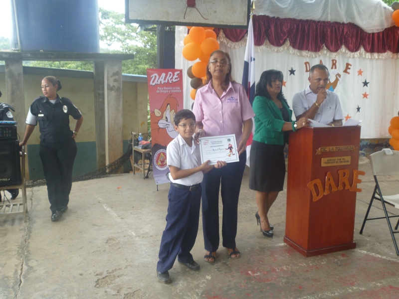 Aproximadamente 165 estudiantes de V y VI grado de la escuela La Polvareda en Arraiján cabecera, recibieron su certificado de culminación del programa Dare. El acto de graduación contó con la participación de la subcomisionada Cintia Meneses, jefa del Servicio de Niñez y Adolescencia, quien felicitó a los participantes que por tres meses participaron de cada instrucción de este programa de prevención al uso de drogas. El subcomisionado René Herrera, en representación del jefe de Zona, agradeció tanto a los educadores y padres por permitir que los niños de este centro educativo participen de los programas de prevención y los instó a poner en prácticas las técnicas aprehendidas. Los niños agradecieron a la Policía Nacional por haber tomado en cuenta esta escuela para la implementación de estos programas.