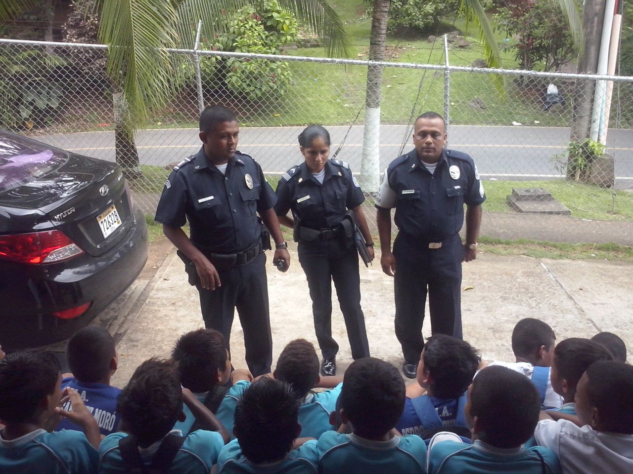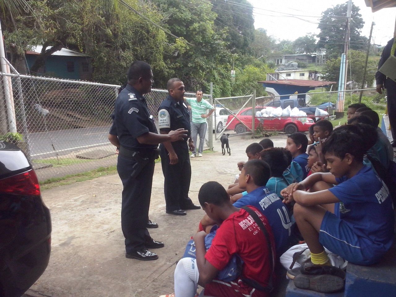 Integrantes de los ocho equipos de fútbol de salón que actualmente se disputan el galardón del primer torneo intercolegial de Nuevo Arraiján participaron éste jueves 30 de octubre de charlas de prevención que fueran dictadas por unidades policiales de Arraiján . El Capitán Tomás Herrera, Jefe del Área D y el Sargento Giovanni Navarro, del Servicio de Niñez y Adolescencia les hablaron de la presión de grupo, decir no a las drogas y al pandillerismo y cómo rescatar los valores morales. Este torneo denominado Copa Dorada, organizado por la Policía Nacional llega a su feliz término este viernes 31 de octubre en el Gimnasio Régulo Sánchez. |