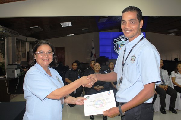 La Policía Nacional con el objetivo de profesionalizar a sus miembros, finalizó el seminario de “Lenguaje de Señas Panameñas” para unidades y componentes civiles que tendrán como misión, ser agentes multiplicadores en sus áreas de trabajo. A los agentes les corresponderá transmitir a sus compañeros este nuevo conocimiento, que le permitirá interactuar con las personas sordas y lo importante que significa comunicarse con esta comunidad. La actividad de culminación de seminario donde se dieron cita el Director General de la Policía Nacional, Omar Ariel Pinzón Marín; la comisionada y Secretaria General, Oris Jaén oficiales; la subcomisionada Elida Ortega, jefa de la Dirección de Bienestar Policial y Familiar, oficiales, clases y agentes. En su intervención, el director Pinzón dijo sentirse orgulloso de esta iniciativa, porque dentro de la institución existe la oportunidad e igualdad. "Esto demuestra una vez más que dentro de este estamento de seguridad hay hombres y mujeres que no solo están comprometidos con garantizar la seguridad, si no con interactuar con la comunidad. Y debemos tener algo bien claro... ante Dios todos somos iguales", detalló Pinzón. La Policía Nacional mantiene el interés de continuar organizando más cursos o seminarios de lengua de señas para capacitar a más unidades de la institución. Desde que inició esta docencia en el año 2005, se han instruido a más de 500 unidades en la Zona Metropolitana, incluyendo a los uniformados que laboran en el Metro de Panamá. |