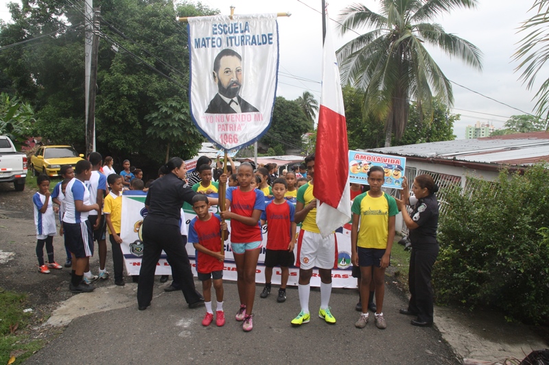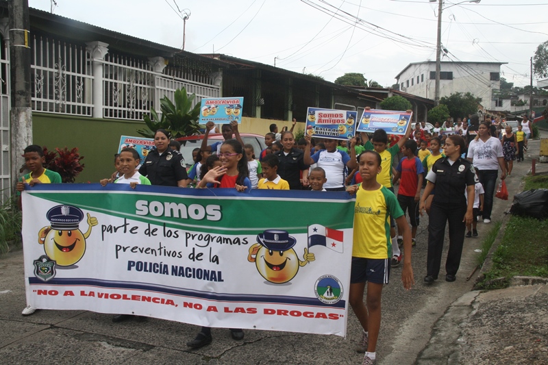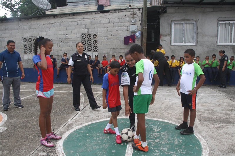 Con un cuadrangular de fútbol y una caminata para promover los valores, el Servicio de la Policía de Niñez y Adolescencia clausuró el programa G.R.E.A.T, en la que participaron 40 estudiantes de la escuela Mateo Iturralde, ubicada en el corregimiento de Rio Abajo. Este grupo de niños y niñas acompañados por los efectivos policiales recorrieron la calle 17 del corregimiento, donde hicieron un llamado a la no violencia; esto como parte del proyecto final de este programa preventivo que les enseña a desarrollar destrezas para resistir y hacer frente a los problemas que dificulten su proceso escolar, como el acoso o bullying, las drogas y las pandillas. Finalizada la caminata, los alumnos compartieron un cuadrangular de fútbol en el que recibieron medallas que los hace ganadores por poner en práctica el respeto, la tolerancia y el trabajo en equipo. |
