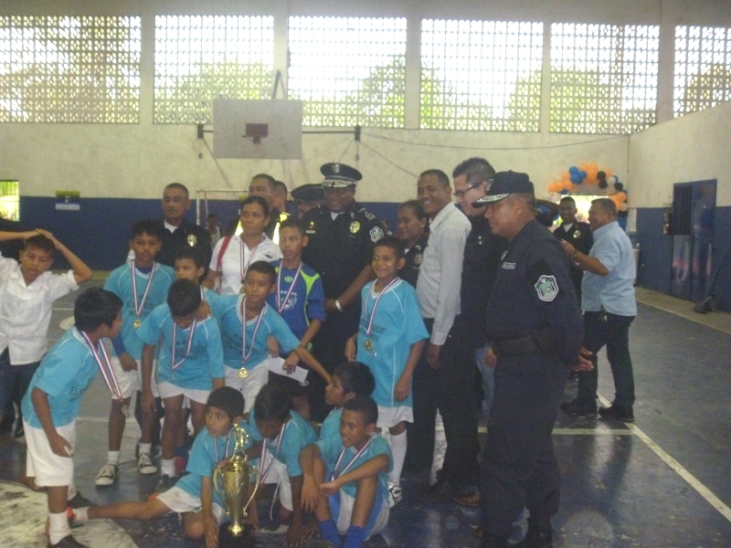 Este viernes 31 de octubre se llevó a cabo la clausura del Primer Torneo Intercolegial de fútbol sala, organizado por la Policía Nacional en la Zona Policial de Arraiján. El equipo de la Escuela San José, se alzó con el campeonato del torneo al vencer ocho goles a tres a su similar Escuela Latina. Mientras que el tercer y cuarto lugar fueron ocupados por la colegio de Nuevo Arraiján y Cerro Tigre. El niño Kevin Fuente de la escuela de San José, se alzó con el máximo galardón de Campeón Goleador al encajar veintiocho goles. El Subcomisionado Luís Navarro, agradeció todas las personas que colaboraron con la Policía Nacional para lograr el éxito de esta actividad deportiva que tiene como objetivo lograr la interrelación entre los estudiantes de los centros educativos primarios del distrito.
