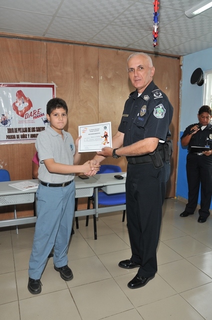 La Zona de Policía de Los Santos, a través de la Policía de la Niñez y Adolescencia, llevó a cabo la implementación del Programa de Prevención de Educación para la Resistencia al Uso y Abuso de las Drogas y la Violencia (D.A.R.E), en el Centro Educativo CADI Bilingüe School, logrando su primera graduación en días pasados. El programa fue recibido con mucho interés, ya que es visto por los educadores como una herramienta primordial en la orientación del uso y abuso de las drogas, siendo los niños las personas más vulnerables a este flagelo. En la capacitación que fue dictada por miembros de la Policía Nacional, participaron 39 niños que cursan el V y VI grados. |