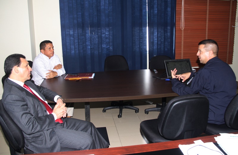 Los coroneles Jaime Hernández y Hugo Velásquez, del Ejército y de la Policía Nacional de Colombia, visitaron este viernes al Director de Docencia de la Policía Nacional, subcomisionado Jorge Escobar, para conversar sobre temas de docencia. Durante esta reunión se intercambiaron experiencias. El momento fue oportuno para la presentación del sistema educativo de la futura Universidad de la Fuerza Pública de Panamá. De acuerdo con el subcomisionado Escobar, este tipo de encuentros entre miembros de policías amigos son provechosos para fortalecer los canales de cooperación. "Estamos y vamos a seguri trabajando en esta línea porque así lo quiere el señor director de la Policía Nacional, Omar Ariel Pinzón Marín", destacó el subcomisionado.