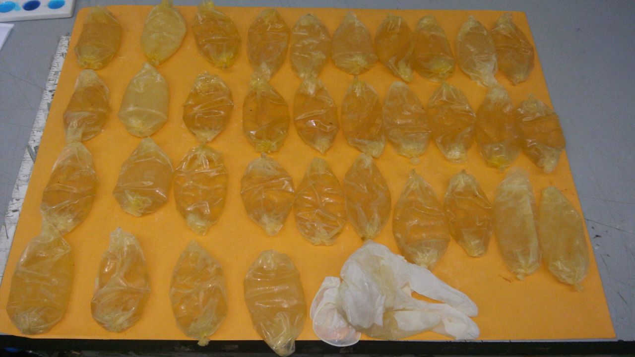 La Policía Nacional de Panamá sigue asestando golpes al crimen organizado. Ayer se aprehendió a un mexicano en el Aeropuerto Internacional de Tocumen por transportar en su organismo 43 comprimidos de cocaína líquida. La aprehensión de este sujeto se realizó al momento en que ingresa al país en un vuelo procedente de Perú y pretendía llegar con la sustancia hasta Guadalajara México. Fue sorpendido por las unidades de inteligencias, quienes luego de varios exámenes, se confirma que el mexicano mantenía la sustancia en el organismo. Se trata de 43 bolsitas de cocaína líquida, de acuerdo al resultado de la prueba de campo realizada. En la acción participaron funcionarios de la Fiscalía de Drogas. La Policía Nacional de Panamá ha incautado durante el 2014, más de 16 toneladas de droga, entre estas, cocaína, marihuana y heroína. |