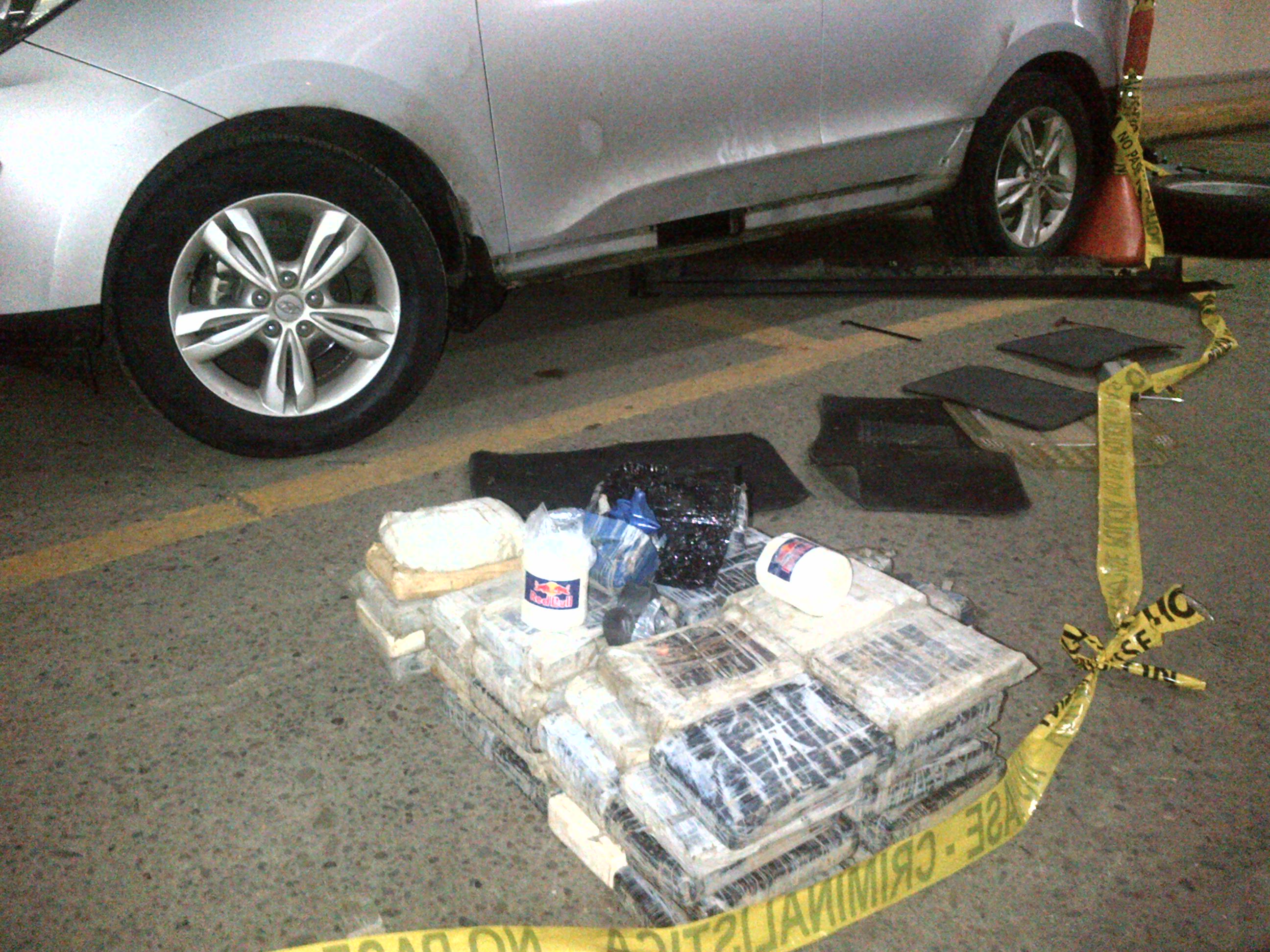 DECOMISAN 77 PAQUETES DE COCAÍNA EN DOBLE FONDO DE AUTO