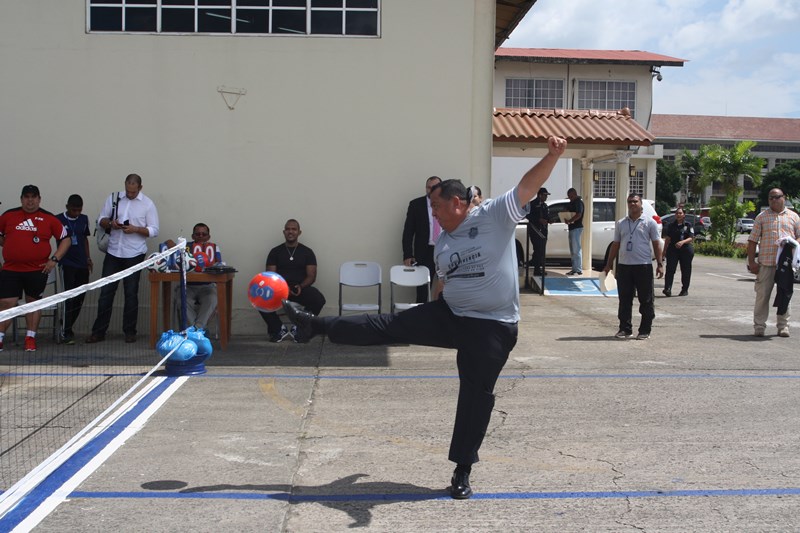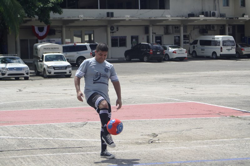 El director general de la Policía Nacional, Omar Ariel Pinzón Marín, inauguró este viernes 14 de noviembre, “El Torneo de Fútbol Tenis” que se realizó en la recién inaugurada cancha ubicada en la sede de la entidad de seguridad, y en la que se disputó un partido entre unidades policiales y reconocidas figuras del patio. En este partido participaron los tipiqueros, Manuel de Jesús Ábrego y Abdiel Núñez, quienes mostraron sus movimientos y habilidades con el balón, compartiendo de esta manera un rato ameno junto a los uniformados. La cancha de fútbol de Tenis fue construida a un costado del Gimnasio de la Policía Nacional y forma parte de un proyecto impulsado por el Gobierno del Presidente de la República, Juan Carlos Varela, que busca sacar de las calles a miles de jóvenes, además mejorar los programas de educación física y deportes en esta institución de seguridad. El director general de la Policía Nacional, Omar Pinzón, anunció que esta es la primera cancha de fútbol tenis que se construye y que la próxima estará en el corregimiento de Pedregal y distrito de San Miguelito, además se trasladarán hacia otras regiones de la provincia de Panamá, Panamá Oeste y Colón. "Este esfuerzo conjunto es una gran iniciativa que beneficiará mucho a las unidades policiales y a la juventud del país", precisó por su parte el tipiquero, Manuel de Jesús Ábrego, quién forma parte de los equipos de fútbol tenis. En tanto, el cantante Abdiel Núñez, dijo sentirse muy satisfecho por el acuerdo de colaboración para hacer realidad la creación de estas canchas deportivas. La cancha está adaptada para practicar baloncesto, voleibol, fútbol y tenis. Esta actividad es parte de una alianza estratégica entre la Policía Nacional y las autoridades del deporte en Panamá.