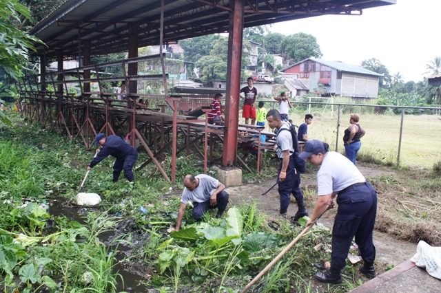 Gracias a la participación de jóvenes de la comunidad del Sector de Don Bosco quienes en compañía de unidades del distrito de San Miguelito, realizaron una jornada de limpieza En la actividad, se logró quitar la maleza y basura que se mantenía cerca de los predios de la cancha deportiva, ubicada en la calle principal del sector antes mencionado. Los jóvenes fueron orientados con una predicación sobre la palabra de Dios, finalizando así tan ardua labor con un juego de fútbol en dicha cancha. |