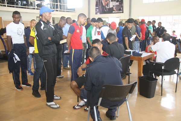 El gimnasio de la Policía Nacional en Ancón, fue el escenario donde se llevó a cabo hoy el pesaje y los exámenes médicos de los boxeadores que participarán en el “Boxeo Aficionado Interzona”, que organiza cada año la primera institución de seguridad del país. El momento fue oportuno para dar a conocer el plan de trabajo a corto y a largo plazo que se pretenden desarrollar con los púgiles. Para el subcomisionado Julio Aizpurúa, jefe de deportes de la Policía Nacional, este evento busca que los diferentes estamentos de seguridad pública interactúen. “Esta vez nos acompaña un equipo del Sistema de Protección Institucional (SPI) y del cuerpo de Bomberos”, expresó. “Es un torneo difícil, hay que dejar todo en el ring, pero contamos con atletas bien preparados, que vienen desde Bocas del Toro, Chiriquí y la Zona Metropolitana, entre otras dependencias”, puntualizó. El primer campanazo se dará a las 5:00 p.m. de este lunes 17 de noviembre, en el gimnasio Roberto Durán. Son 12 equipos los que estarán compitiendo en la categoría de las 49 a los 91 kilogramos. La gran final está programada para este jueves 20 de noviembre. |