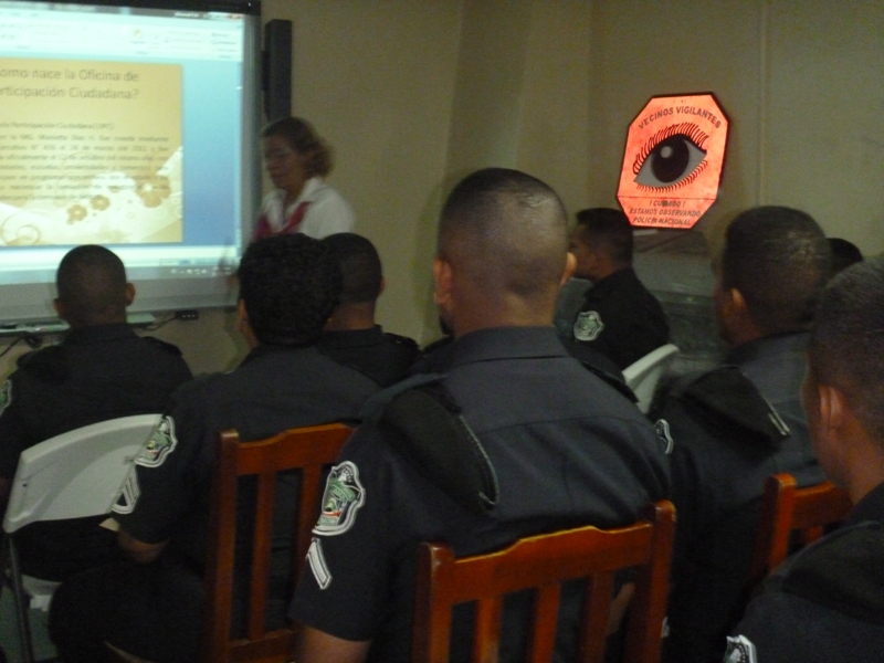 Efectivos de la zona policial del distrito de Arraiján, enriquecieron sus conocimientos a través de un conversatorio realizado por el personal de la Oficina de Participación Ciudadana del Ministerio de Seguridad Pública en las instalaciones de este puesto policial. El tema central de esta reunión fue acerca de los programas de carácter preventivo que lleva a cabo la Policía Nacional en beneficio de la ciudadanía. Durante esta actividad, las unidades intercambiaron opiniones referentes a los Programas de Vecinos y Transportista Vigilantes, a su vez de las nuevas acciones encaminadas al mejoramiento de las mismas. El subcomisionado René Herrera, ejecutivo de esta Zona Policial agradeció a los funcionarios por la capacitación y a las unidades a poner en práctica lo aprendido acerca de este tema. Finalmente la licenciada Marieta Díaz, directora de la oficina de Participación Ciudadana manifestó, que la integración de la ciudadanía a los programa es con el objetivo de lograr la convivencia pacífica entre los vecinos educándolos a prevenir el delito.