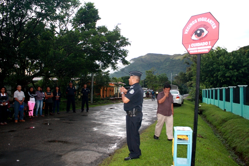 Con un acto simbólico, moradores del barrio de La Reforma, en El Valle de Antón, en la provincia de Coclé, se sumaron al programa de "Vecinos Vigilantes" que lleva adelante la Policía Nacional en todo el país. la inauguración se dio en horas de la tarde de este martes. Para Roberto Muñoz Cedeño, coordinador principal de la comunidad, este programa beneficiará a los ocupantes de unas 45 viviendas, donde cada persona tendrá la misión de reunirse periódicamente con los miembros de la Policía Nacional, para juntos buscar los mecanismos de protección de sus vidas y sus bienes. “El éxito del programa dependerá si cada uno de los presentes vigila constantemente nuestros barrios y está atento a las personas sospechosas. Somos la primera línea de defensa contra los malhechores", destacó el dirigente. En tanto el subcomisionado Federico Oberto, manifestó que el principal propósito de la Policía Nacional es trabajar en conjunto con la comunidad, manteniendo un contacto directo, por lo que exhortó a las personas sumarse a esta iniciativa preventiva. |