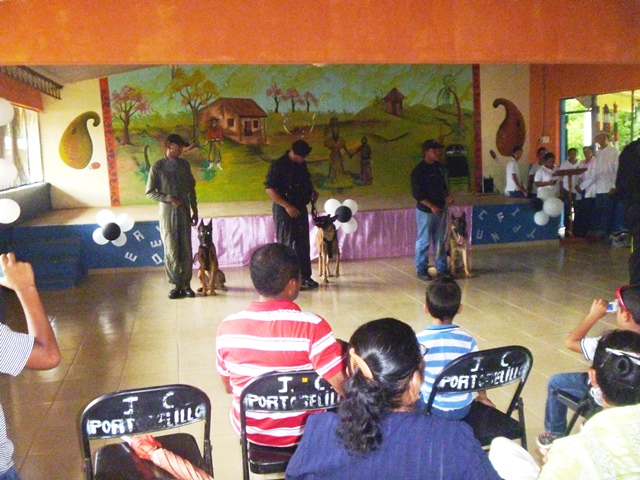 Unidades de la oficina de seguridad ciudadana de la Zona de Policía de Herrera participaron en una feria de salud, organizada por estudiantes de la facultad de Enfermería, del Centro Regional Universitario de Azuero, en la Escuela Primaria de la comunidad de Portobelillo del distrito de Parita. En la actividad de salud, los miembros de la Policía Nacional la presencia de la comunidad, para realizar volanteo con mensajes de prevención sobre seguridad. También exhortaron a los moradores de dicha comunidad para integrarse en los programas comunitarios que lleva la Policía Nacional, especialmente del Programa de Vecinos Vigilantes. De igual manera, realizaron una presentación los canes de Unidades Caninas de la Policía Nacional, sobre obediencia básica y demostraciones de perros de ataques. |