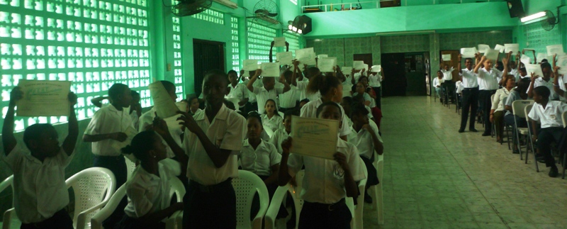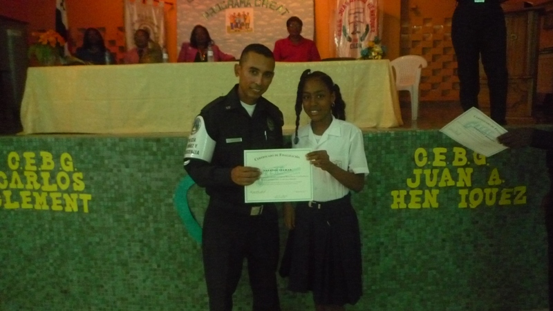 En horas de la mañana de este martes 25 de noviembre, la Zona Policial de Colón, realizó el acto de culminación del programa GREAT, cuyas siglas en español significan Educación y Entrenamiento para resistirse a las Pandillas, de los centros de educación básica general Juan Antonio Henríquez y Carlos Clement. El acto se realizó en el salón de acto de la escuela San Vicente Paul, donde unos 230 estudiantes recibieron su certificación de culminación del programa. El comisionado Carlos Rumbo, jefe de la zona destacó que la Policía Nacional realiza estos programas con las finalidad de prevenir que los estudiantes se involucren en pandillas. Con estos programas se les da las herramientas a los niños y niños, para que no sean presas fáciles de personas de mal vivir. Por su parte, la estudiante Carla Ríos, nos señaló que se sentía feliz con lo que le había enseñado el sargento 1ro. Luis González, de la Policía de la Niñez y la Adolescencia, y que ella a su vez le enseñaría esto a sus hermanos y amiguitos para que le digan no a la violencia. En el acto estuvieron presente autoridades locales y educativas.