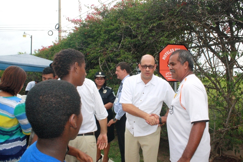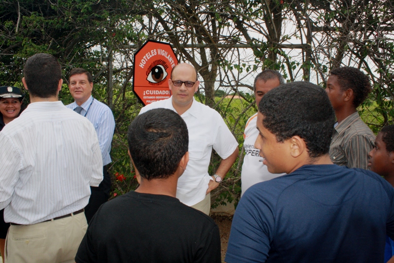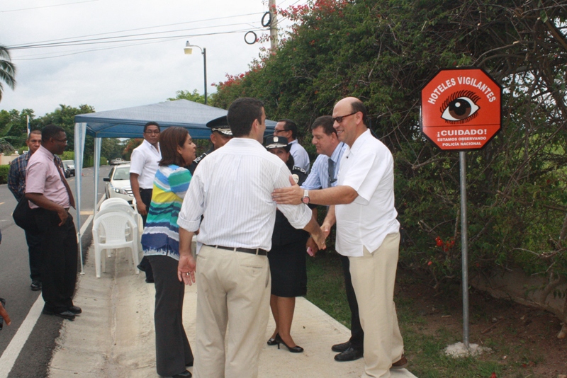 La Policía Nacional en la provincia de Coclé, en coordinación con los miembros del Departamento de Seguridad Ciudadana, develaron el primer letrero del programa preventivo Hoteles Vigilantes en el sector de Farallón. El acto tuvo lugar en horas de la mañana del martes 25 de noviembre, en el que asistieron la comisionada Ibeth González de Rivas, el vicegobernador Rommel Quirós, subcomisionados, oficiales, gerentes de hoteles, jefes de seguridad, autoridades públicas y residentes del lugar. El gerente General de Hotel Decamerón, Carlos Arias se mostró complacido con la inauguración de este programa preventivo que buscar dar seguridad a los hoteles establecidos en la provincia. “Nos sentimos complacido de ser colaboradores directos de una institución que se mantiene comprometida con la sociedad, ahora depende de la interacción de cada uno de nosotros como miembros” expresó el Gerente. Dijo que estarán atentos a los movimientos de personas sospechosas y así ser la primera línea de defensa contra las personas del mal vivir. En tanto el vicegobernador felicitó a la Policía Nacional por esta iniciativa, recalcando que con el esfuerzo y participación de la comunidad se lograran resultados significativos. |