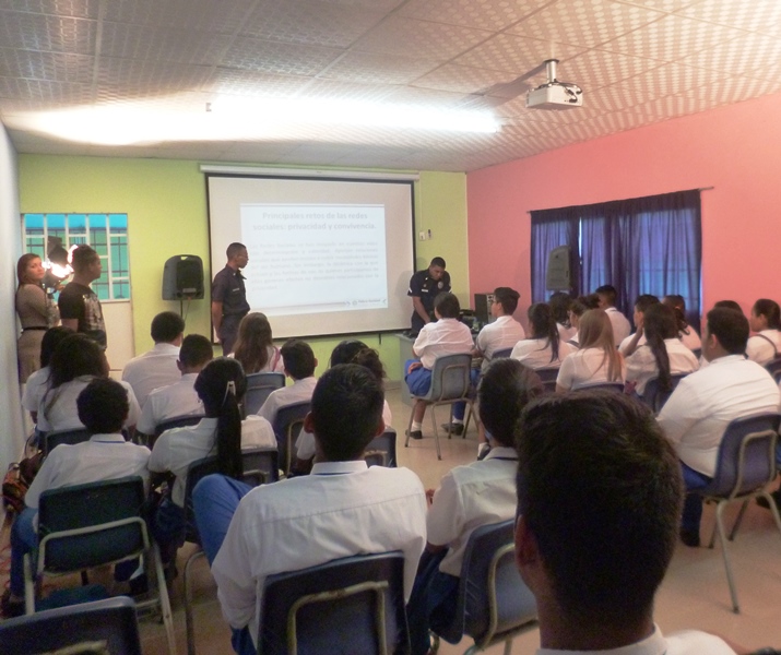 Unidades de la Policía Nacional en Panamá Oeste impartieron una serie de charlas preventivas a estudiantes graduandos de IX y XII grado del Colegio Bilingüe Afred B. Novel, en La Chorrera. Esta oportunidad el tema a tratar fue: “El Avance Tecnológico en Nuestra Juventud y su Repercusión” tras solicitud de los directivos del plantel educativo. El objetivo de estas acciones fue mostrarle a los estudiantes que la tecnología tiene su parte positiva, pero si no la sabemos usar adecuadamente, pueden verse involucrados en actos delictivos o exponerse como individuos. Los docentes solicitaron a las unidades policiales impartir este tipo de charlas educativas, no solamente a los estudiantes sino a los educadores y padres de familia, responsables de supervisar las actividades de los jóvenes. |