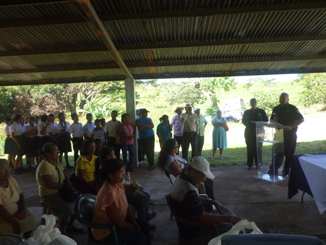 La barriada Vueltas Largas del distrito de Santa Fe en la provincia de Veraguas se integró este miércoles 26 de noviembre al programa de seguridad de la Policía Nacional “Vecinos Vigilantes”. El capitán de la Policía Nacional, Rogelio Rujano estuvo en la inauguración de este programa en representación del comisionado Gilberto Cuevas, Jefe de la Zona Policial de Veraguas. En su intervención manifestó que en el área se garantizará aún más la seguridad, por lo que exhortó a la comunidad a ser ente de colaboración e información, que permita a la Policía Nacional realizar un trabajo en beneficio al pueblo Veragüense. Rubén Quiroz, Presidente del Comité de Vecinos Vigilantes, explicó que estas acciones se realizan con miras a que la comunidad contribuya a la divulgación de actividades delictivas que puedan estar dándose en su comunidad. Invitó a los moradores de otros barrios cercanos que se unieran y formaran parte del programa de Vecinos Vigilantes que lleva adelante la Policía Nacional. |
