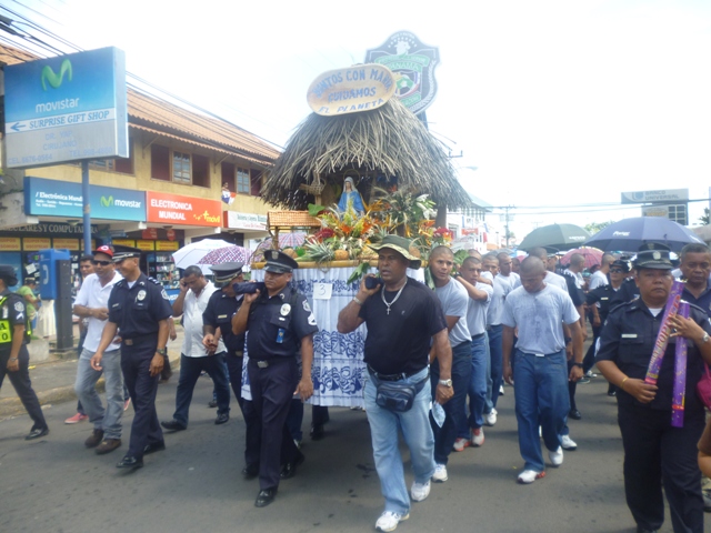 Unidades de zona policial de la provincia de Veraguas participaron de la eucaristía y procesión en honor a la Virgen de la Medalla Milagrosa, en conmemoración los 60 años de celebrarse esta tradición. La eucaristía fue presidida por monseñor Audilio Aguilar en la Catedral del distrito de Santiago, quien hizo un llamado a los fieles creyentes a continuar practicando los designios emanados por el Todopoderoso; sobre todo en estas fechas venideras en donde el amor al prójimo debe resaltar. La Banda de Música de la Policía Nacional, se hizo presente en la procesión de la Virgen de la Medalla Milagrosa, por las principales calles del distrito de Santiago. |