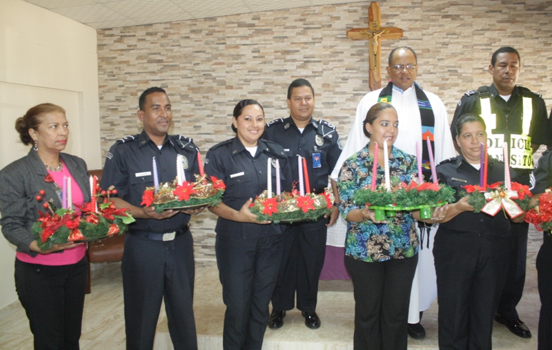 Como parte de las actividades religiosas de este mes de diciembre, en la Zona Policial de la Chiriquí, el Padre Heriberto Ríos, en conjunto con los funcionarios de esta institución, realizaron el pasado jueves 27 de noviembre, la bendición de la Corona de Adviento. La actividad inició con una misa de acción de gracias y luego se realizó la bendición de la corona de adviento. La semana de inicios de los tiempos de Adviento se lleva a cabo el primer domingo del mes de diciembre, en preparación de la Navidad y en la corona se colocan cuatro velas; una de color azul que representa el espíritu de la vigilia, una vela verde que simboliza la esperanza, una rosada que da la alegría y la vela amarilla es el color de la presencia luminosa de Dios que se van encendiendo domingo tras domingo, en el marco de una oración. En la misa estuvo presente el subcomisionado José Flores, ejecutivo de la Zona; el subcomisionado Roger Rodríguez; encargado del departamento de Operaciones de Tránsito en la provincia de Chiriquí, el Mayor Mario Rosario; Jefe del área Metropolitana de David y los miembros juramentado y no juramentado de esta institución. La Banda de Música de la zona, ofrecieron bellas canciones de Navidad y por la paz, toque espiritual que contagia estas celebraciones, al igual que el convivio de compartir alimentos y dulces. |