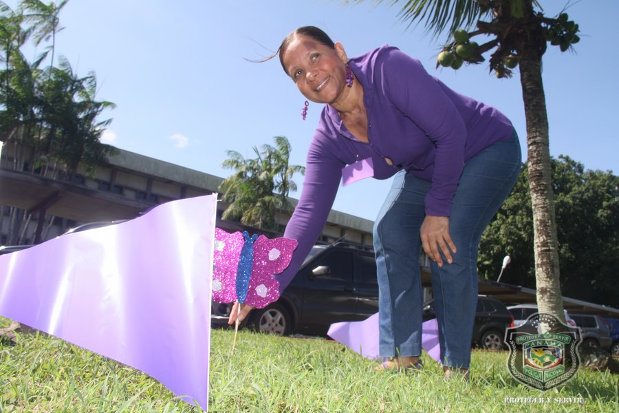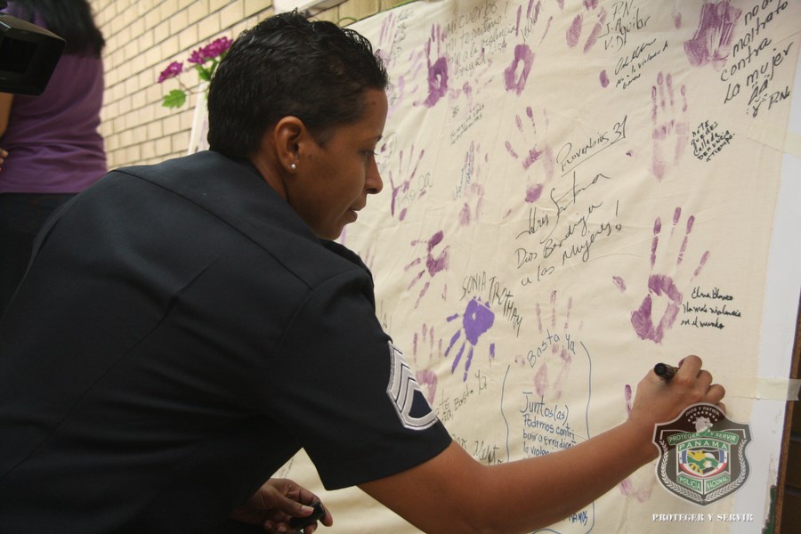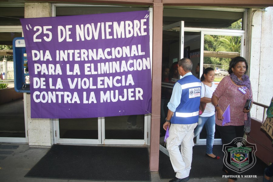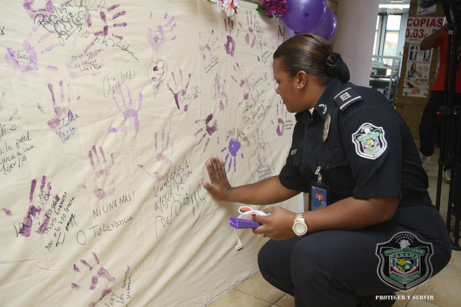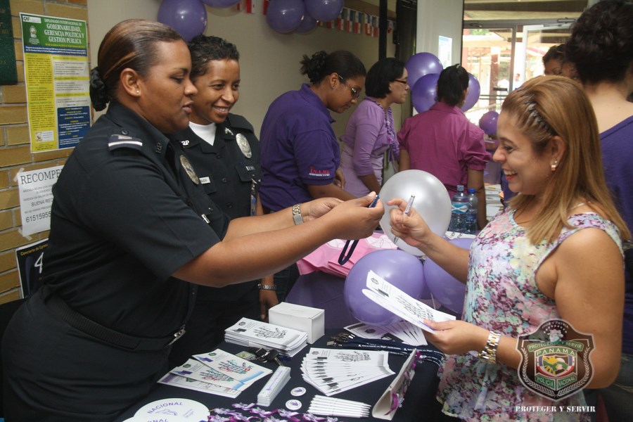 La Policía Nacional a primera horas del pasado 29 de noviembre, participó de una feria realizada en el Domo de la Universidad de Panamá en conmemoración al 25 de noviembre día “Internacional de la No Violencia contra la Mujer” lema de la campaña emitido por la Organización de las Naciones Unidas “Únete para poner fin a la violencia contra las mujeres”. El objetivo de esta feria donde participaron diferentes instituciones públicas fue dar un mensaje a través de diferentes “Stands” sobre medidas de seguridad. La campaña también busca proyectar el papel de las mujeres en la Policía Nacional la cual ha sido significante. Al final del evento, los participantes procedieron con la siembra banderitas en la afueras del Domo y cada institución presentó emblemas morados, color insignia del Día Internacional de la Eliminación de la Violencia Contra las Mujeres. |
