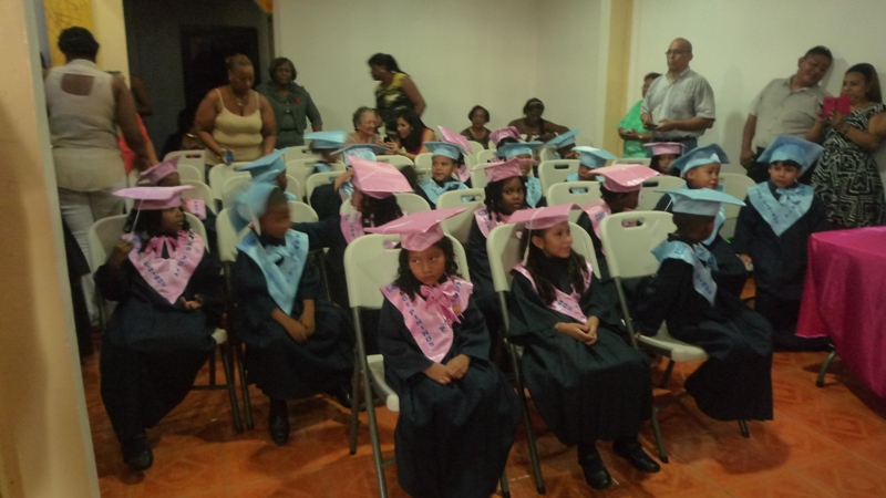 Unos 25 niños y niñas que cursan el kínder en el centro de orientación infantil, “Los Pininos” de la zona policial de Colón recibieron sus certificados por haber culminado satisfactoriamente sus estudios este martes 02 de diciembre. El comisionado Carlos Rumbo, jefe de la tercera zona felicitó a los niños y niñas y los exhortó a seguir estudiando, ya que ellos son el futuro de la provincia de Colón. A los 25 niños se le entregó sus certificados y algunos presentes. Durante el acto participaron maestros, el personal administrativo y padres de familia. |