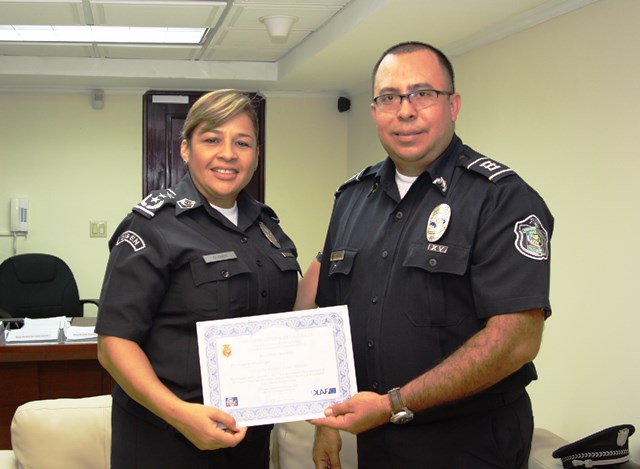 Unidades de diferentes divisiones de la Policía Nacional, culminaron satisfactoriamente diversas capacitaciones en el extranjero. La Capitán, Luz De Medina, recibió certificado tras su capacitación en el curso "Formación en Procesos de Selección para Cuerpos Policiales de Hispanoamérica” en El Salvador. El Capitán, Luis Quezada, obtuvo certificado del “Curso de Formación Sobre Falsificación de Moneda para Países Iberoamericanos” en la República de Chile. La subteniente, Abdisitlmi Pineda, Sargento 2 °, Eduardo Rodríguez, Cabo 1 °, Sulma Serrano y el Agente, Dionisio Gonzales, fueron capacitados sobre “Modelo Policial, Preventivo y Comunitario, Aplicado a la Prevención del Delito Común y Organizado” Los uniformados recibieron las formaciones en la semana del 24 al 28 de noviembre del presente año. La Comisionada, Oris Jaén, Secretaria General de la Policía Nacional, recibió a las unidades en su despacho, donde los motivó a seguir preparándose para servir a nuestro país. |