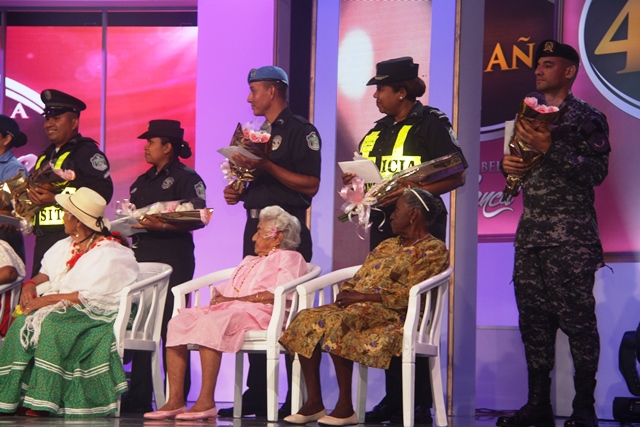 La Policía Nacional valora aquellas mujeres que con mucho esfuerzo sacan adelante a su familia y que a través del certamen “Esa Cabellera Blanca 2014”, son resaltadas. Esta institución de seguridad, conformada por hombres y mujeres llenos de virtud, dirigida por el director Omar Ariel Pinzón Marín, se llenó de regocijo y honor la noche de este miércoles 3 de diciembre, al colaborar con estas “lindas abuelitas”. Con un ramo de rosas blancas y rosadas, además de 400.00 dólares a cada una de las abuelitas, la Policía Nacional saludó y felicitó a todas las participantes de “Esa Cabellera Blanca 2014”, certamen que cumple sus 40 años. A parte del Director de la Policía Nacional, Omar Pinzón, al acto concurrieron miembros del directorio quienes como un gesto de altruismo que caracteriza a los uniformados, decidieron donar parte de su salario para llevar un poco de alegría a estas “abuelitas”. El director policial agradeció por este gran gesto y a los más de 18,000 hombres y mujeres que siempre han apoyado obras como estas. Igualmente felicitó a la ganadora del concurso, Federica Lombardo, representante de la Comarca Guna Yala. La Policía Nacional agradece a Telemetro Panamá, canal que transmite este certamen, por la oportunidad de compartir un rato de mucha emoción con estas mujeres llenas de experiencias y que viven en diferentes regiones del país.