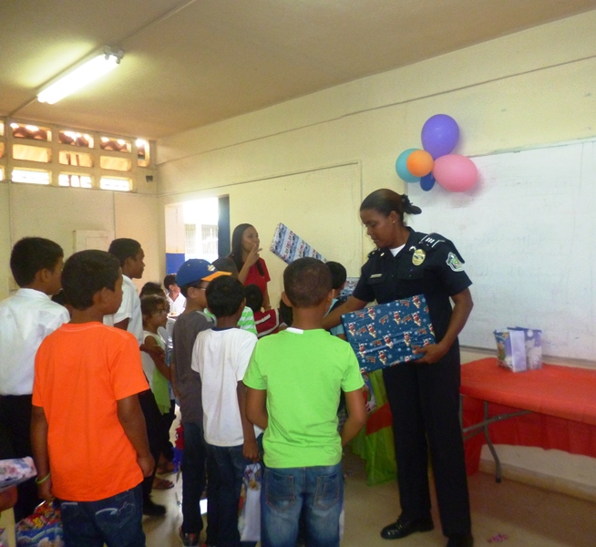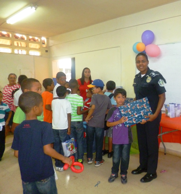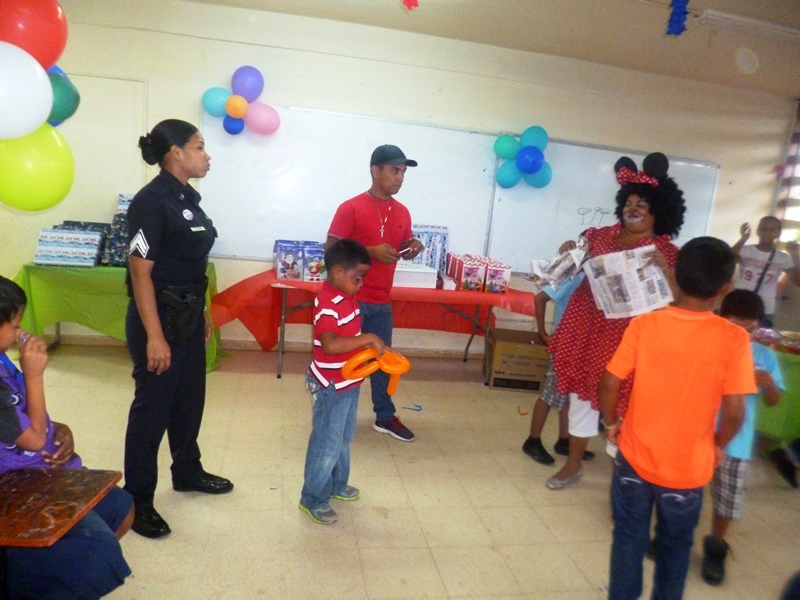 En conmemoración del “Día Internacional de las personas con Discapacidad”, la Décima Zona Policial le hizo este jueves 4 de diciembre, la fiesta de fin de año a los niños de la escuela San Antonio del distrito de La Chorrera. El subcomisionado Gregorio Alvarado en representación del Comisionado Nadim García T. jefe de la zona policial, compartió con los niños que confrontan problemas de discapacidad con el objetivo de que ellos se sientan que son iguales en la sociedad, con derechos y oportunidades para impulsar la necesidad de romper barreras y abrir puertas con el fin de crear una sociedad que incluya todos. La docente de educación especial Yosi Hurtado, agradeció este regalo para sus niños, los cuales se divirtieron con las unidades de la Policía de Niñez y Adolescencia, donde la agente Dioselina Quintero, les pintó las caritas, le entregaaron regalos y culminaron el acto, con un almuerzo. |