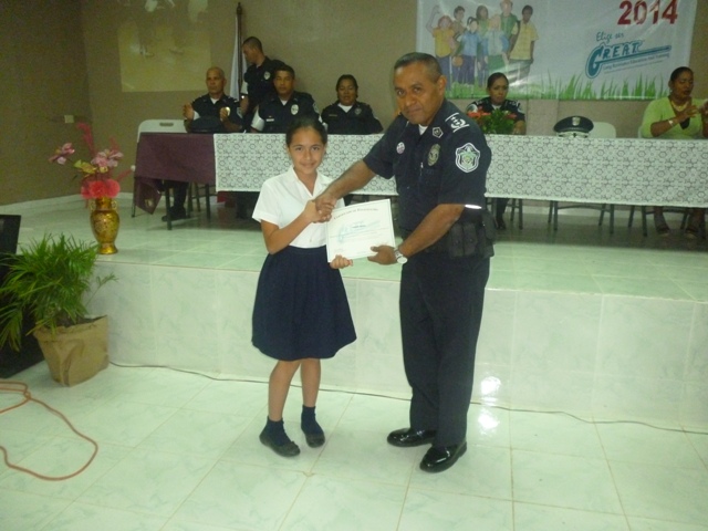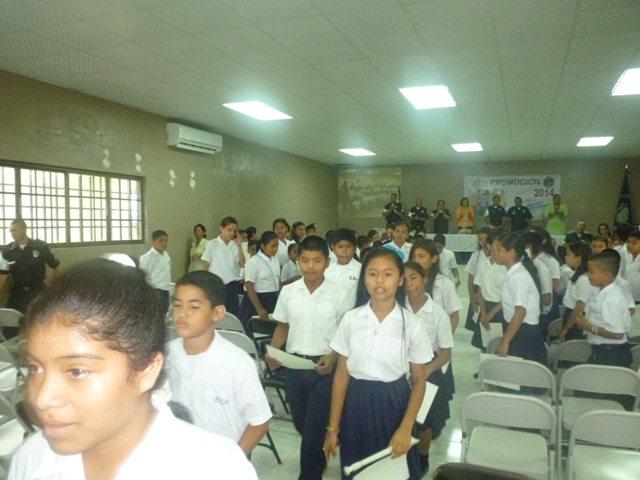 Unos 137 niños de diferentes centros educativos (Mariato, Cañazillas, San Antonio y La Mata), finalizaron con éxito el programa de Resistencia a las Drogas y la Violencia (DARE), la graduación se dio en el centro básico José de Los Santos Gutierrez, en la provincia de Veraguas. En el acto estaba el comisionado Gilberto Cuevas jefe de la Zona de Policía de Veraguas, quien dijo sentirse complacido con el trabajo que realizan las unidades del departamento de la Policía de Menores, quienes inculcan a cada niño y adolescente la importancia de los valores. Por su parte, la subcomisionada Cinthia Meneses, jefa del servicio de Niñez y Adolescencia, exhortó a estudiantes a continuar estudiando enfatizándole que ellos son el futuro del país. |