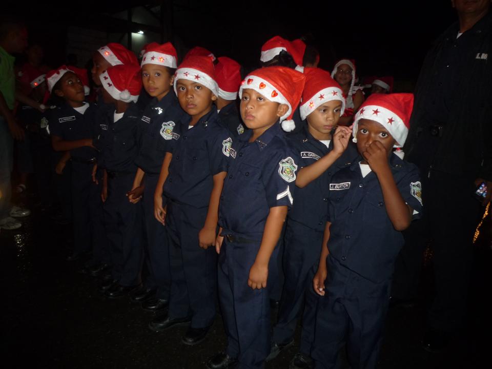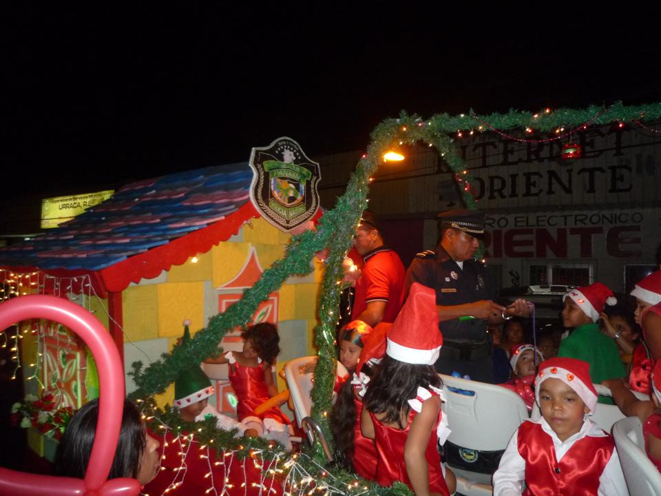 La Policía Nacional en la provincia de Bocas del Toro junto a miembros del Club Activo 20-30 y otras Instituciones realizaron el desfile de Navidad de 2014 en el distrito de Changuinola. La delegación de la zona policial fue una de las más lucidas, contó con un carro alegórico navideño llenó de luces, mientras que los hijos de las unidades cantaban villancicos. De igual forma tubo su participación de un Santa Claus Bocatoreño, el cual repartió golosinas en todo el trayecto del desfile. Las calles de Changuinola estuvieron abarrotadas de personas quienes disfrutaron de la actividad. |