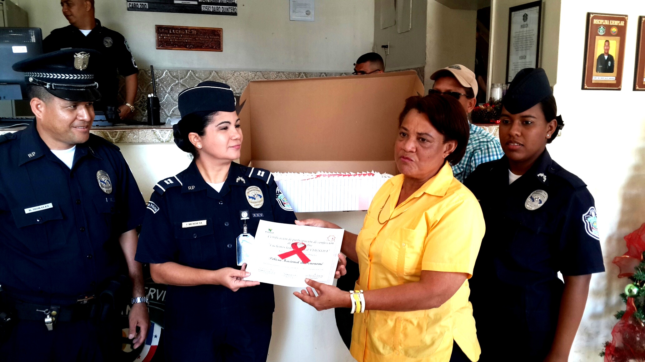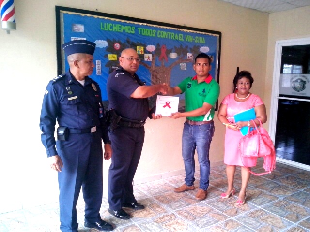 La Segunda Zona Policial, al mando de la Comisionada Ibeth González de Rivas, ganó el concurso interinstitucional de VIH-SIDA, celebrado recientemente en la provincia de Coclé. Las unidades policiales, que además de patrullar calles, avenidas y comercios de la región, colaboran con las demás instituciones en las campañas preventivas, que vayan encaminadas a fortalecer el conocimiento de la ciudadanía, en cuanto a los riesgos en que se encuentra, al tomar actitudes equivocadas, conformó un equipo de trabajo, que presentó un mural, que al ser evaluado por la comisión calificadora, fue premiado con el primer puesto. El mural será expuesto en la antesala de la gobernación, por el tiempo que la comisión del concurso haya establecido con la primera autoridad de la provincia. La Policía Nacional seguirá apoyando todas las actividades, tendientes a fortalecer el conocimiento de los peligros que acechan a la población, sean estos de seguridad, salud, educación y cualquier otra índole. |