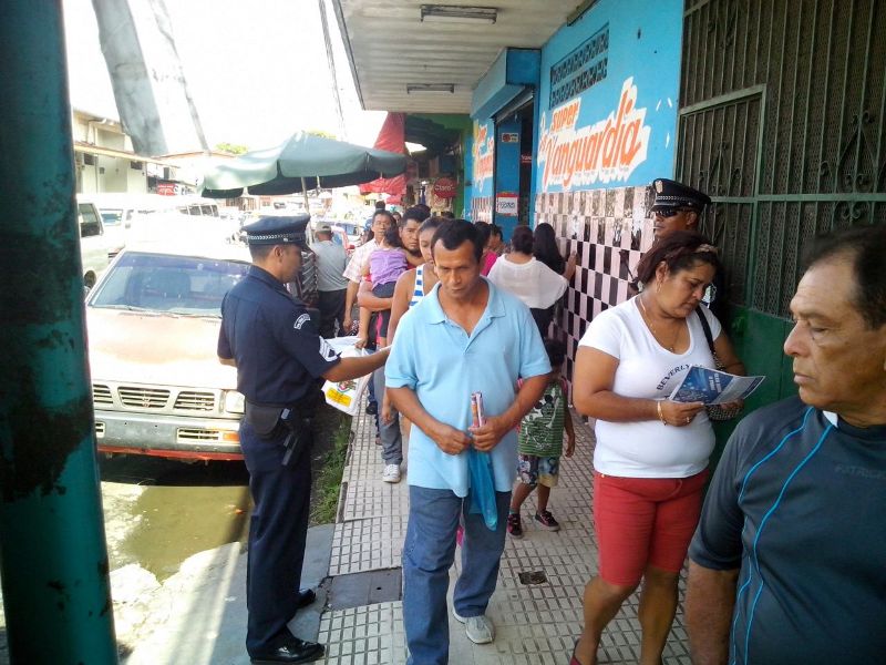 La Policía Nacional a través del departamento de Seguridad Ciudadana en la provincia de Coclé, realizó una jornada de volanteo de seguridad, con la finalidad de que la ciudadanía se mantenga informada. El teniente Mario Ovalle dijo que las personas tienen que tomar medidas de seguridad en sus hogares, lugares de trabajo o cuando se dirija alguna parte. La Policía Nacional durante el mes de diciembre, ha reforzado el servicio policivo preventivo en las principales áreas comerciales y bancarias, así como también las áreas residenciales en toda la provincia, con el fin de minimizar la delincuencia. |