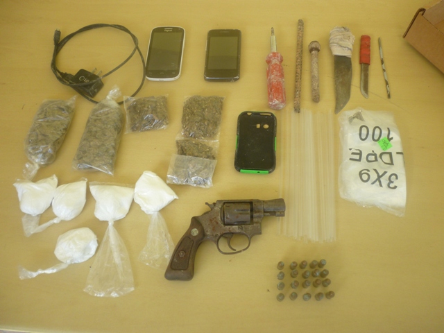 Unas 42 unidades de la Policía Nacional al mando del comisionado Gilberto Cuevas, realizaron una requisa en la cárcel pública de Veraguas. Todo esto es producto de los operativos que se realizan en el marco de las acciones de “Navidad segura en Veraguas”. En la acción se encontró un arma de fuego y 20 municiones sin detonar, el cual estaba oculto en un hueco. Además hallaron drogas en bolsitas, celulares, batería, chip y cargadores. El comisionado Gilberto Cuevas, jefe de la Zona de Veraguas, reiteró que los operativos en las calles al igual que las requisas en el penal, son unos de sus objetivos para garantizar la seguridad en la provincia. |