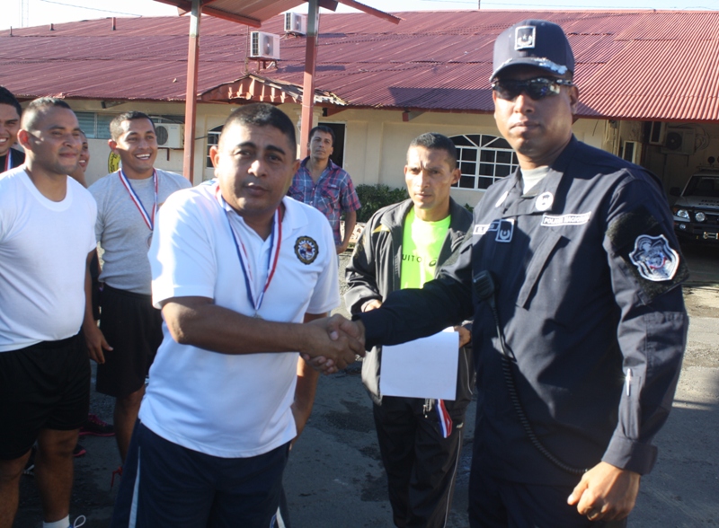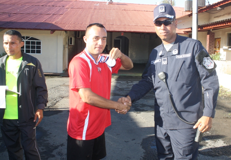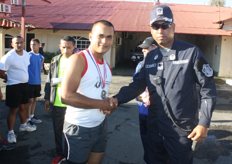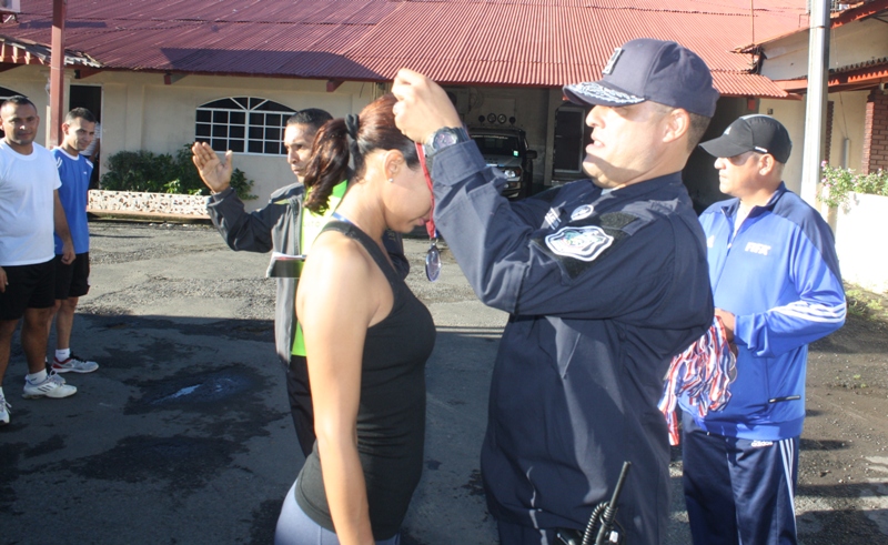 Con más de 30 corredores uniformados, se realizó la carrera de los cinco (5) Kilómetros, organizada por la sección de Deportes de la Cuarta Zona Policial de la provincia de Chiriquí, donde 18 atletas se llevaron las medallas. El ganador absoluto masculino fue el Cabo Raúl Guerra, quien labora en el área de la Metropolitana de David, completó la carrera con un buen tiempo. Por otro lado, la ganadora absoluta de la prueba en las damas fue la Agente Jeimy Guerra de servicio en el GAR, con una mejor marcación. Los ganadores de la diferentes categoría en la rama masculina: de 18 a 25 el Cabo 2do. Mario Ramírez de 26-32 el Cabo 2do. Raúl Guerra. de 33-39 el Cabo 1ro. Denis Santos de 40 -48 el Sub-Teniente Aguilar Los ganadores de la diferentes categoría en la rama femenina: de 26-32 la Agente Jeimy Guerra de 33-39 la Sargento 2do. Ilka Bernal de 40-48 la Cabo 2do. Clarisa Salazar El Subcomisionado Virgilio Lezcano y el Mayor Mario Rosario hicieron entregas de las medallas a los atletas ganadores y los felicitó por su alto espíritu de cuerpo. |