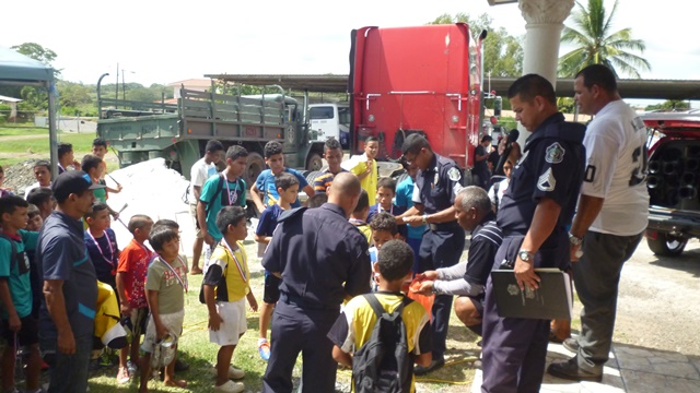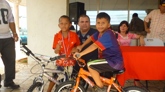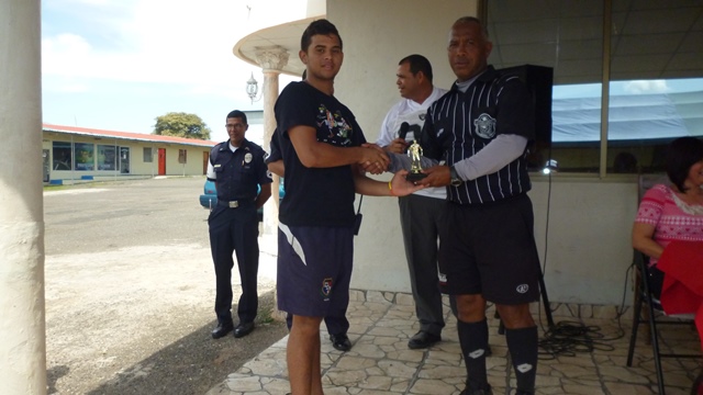 La cancha de deportiva, ubicada en las instalaciones de la Zona de Policía de Herrera, fue el escenario para que niños y adolescentes jugaran la final de la liga de fútbol toque conocida como “Barrios seguro”. En este encuentro se destacaron los equipos El Caracol, El Renacimiento y Boca de Parita. Cada equipo de tenía su barra que en cada jugada los animaba a dar lo mejor de sí en la cancha. En la actividad se hicieron entregaron medallas, trofeos y bicicletas a los jugadores más destacados. En la actividad estuvo presente el doctor Raúl Rivera, Gobernador de la provincia de Herrera, la licenciada Edilma Flores, Fiscal de Homicidio; licenciado Olmedo Alonso, Alcalde del distrito de Chitré y el Subcomisionado Ismael Herrera, Jefe de la Zona de Policía de Herrera. El momento fue aprovechado por el Subcomisionado para agradecer a las autoridades presentes y felicitar a los integrantes de los equipos que se coronaron campeones. Mientras se jugaba la final, se llevó a cabo en directo el programa radial conocido como “La Policía en tu Comunidad” a través de la emisora Radio Reforma, con la participación del doctor Rivera, Gobernador de la provincia y el Subcomisionado. |