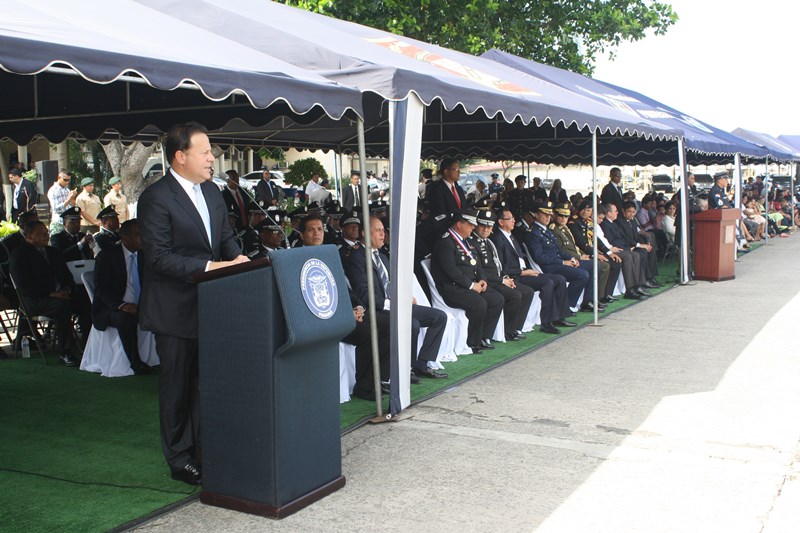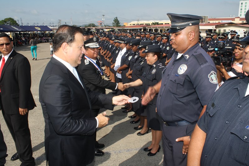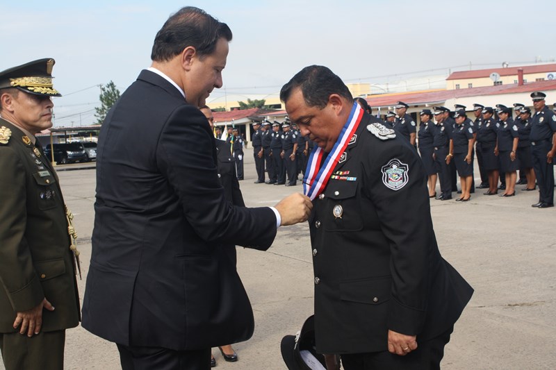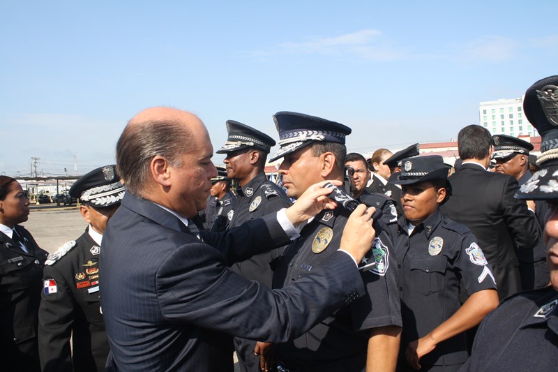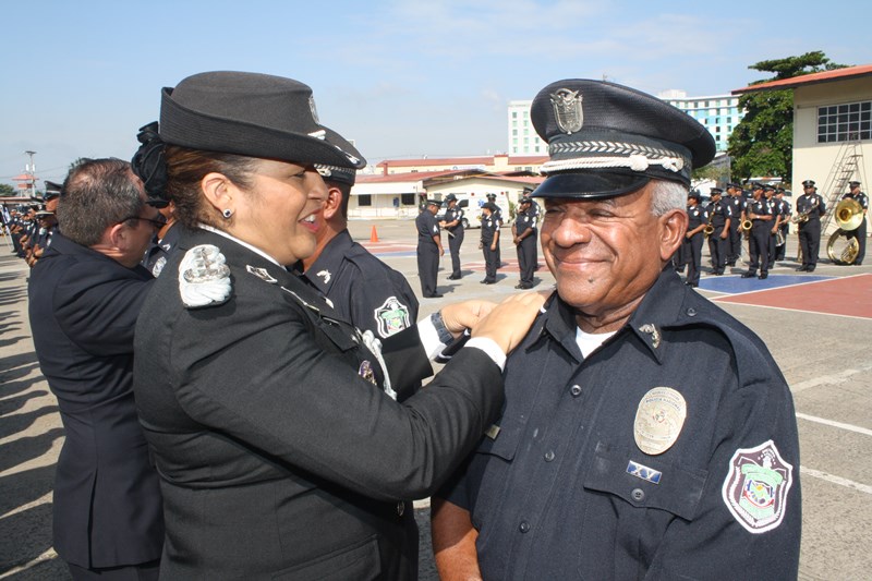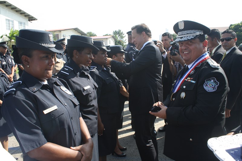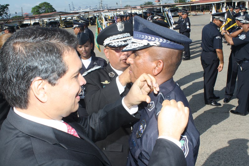 El Excelentísimo señor Presidente de la República, Juan Carlos Varela Rodríguez, presidió este lunes, el acto de ceremonia de ascenso de 3 mil 274 miembros de la Policía Nacional (PN) que pasaron al rango inmediato superior. El gobernante panameño aprovechó el momento para instar a los uniformados a seguir trabajando por el país, como lo han hecho hasta ahora. “Con trabajo arduo disciplina y entrega este grupo de uniformados se han hecho merecedores de estos ascensos”, expresó el Mandatario. Los uniformados fueron bautizados con agua de un carro cisterna del Cuerpo de Bomberos de Panamá, en la tradicional ceremonia de ascensos, como muestra de lo que será nueva etapa laboral. Por su parte, el Excelentísimo señor Ministro de Seguridad Pública, Rodolfo Aguilera dijo que la Policía es una entidad de protección ciudadana y de cambio social que está comprometida con la simplificación de los procesos internos, para prestar un mejor servicio. El respeto a la antigüedad y profesionalismo de cada hombre y mujer de uniforme, han sido los criterios que la Junta Evaluadora de Ascensos ha tomado en consideración para hacer efectivo este proceso, acorde a los lineamientos emanados por el Director General Omar Ariel Pinzón Marín, que buscan la transparencia y el fiel cumplimento a lo establecido en la ley 18, que regula esta institución de seguridad. Durante la ceremonia, el Presidente Varela condecoró al Director Policial con la Medalla “Honor al Mérito”. El anuncio de estos ascensos se realizó el martes 16 de diciembre, a través de la Orden General del Día Extraordinaria No. 236, donde se detalla que 23 subcomisionados ascendieron al rango de comisionados; 16 subcomisionados; 48 mayores; 120 capitanes; 338 tenientes; 499 subtenientes; 544 sargentos 1ro.; 324 sargentos 2do.; 488 cabo 1ro.; y 874 cabos 2do. El ascenso significa un reto más para todas las unidades policiales en seguir trabajando por la comunidad con el mismo grado de responsabilidad, disciplina y entrega, y con la meta de seguir subiendo en rangos y cargos dentro de la Institución. |