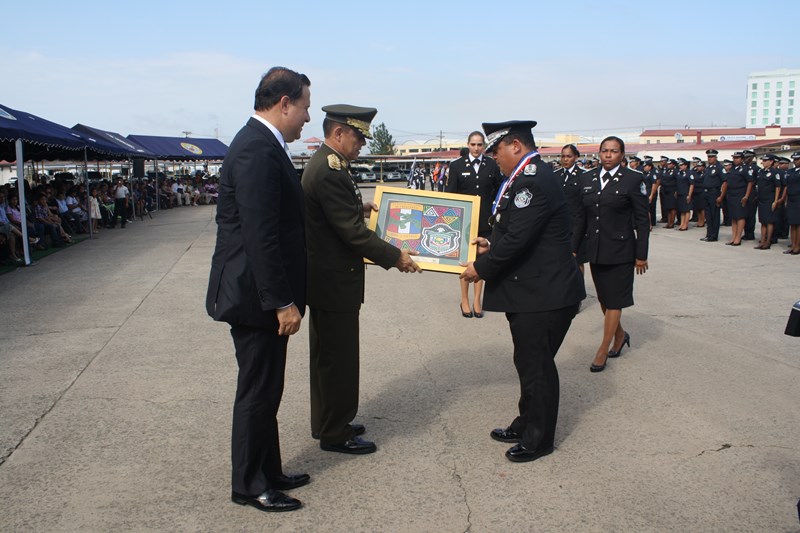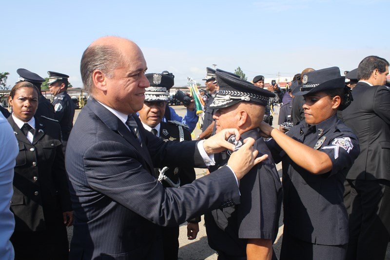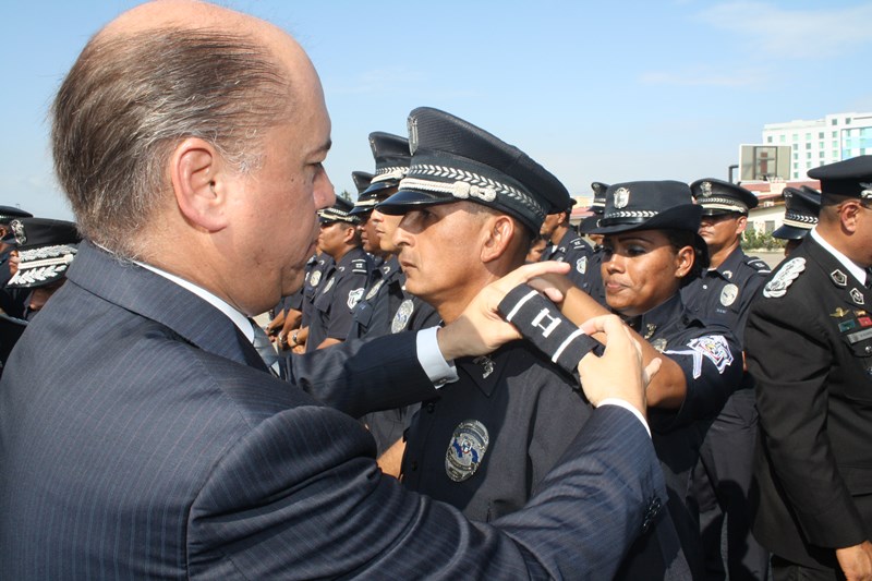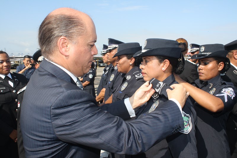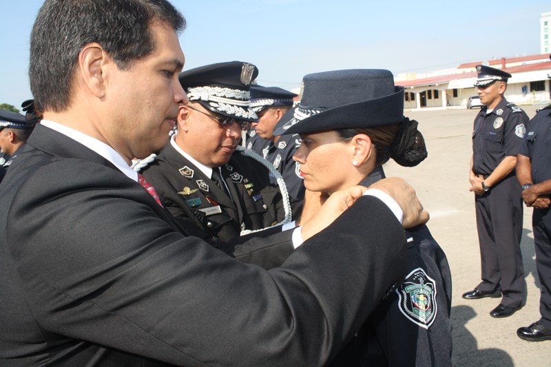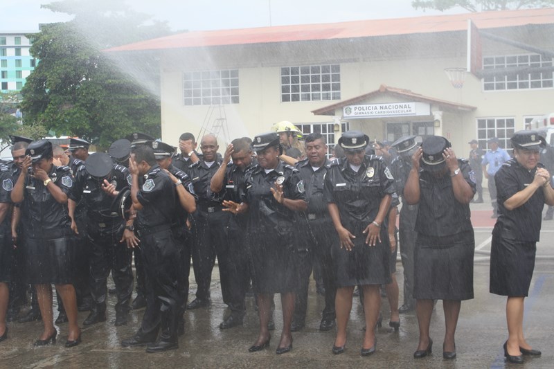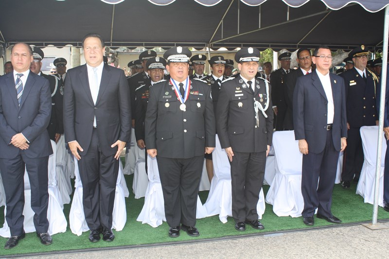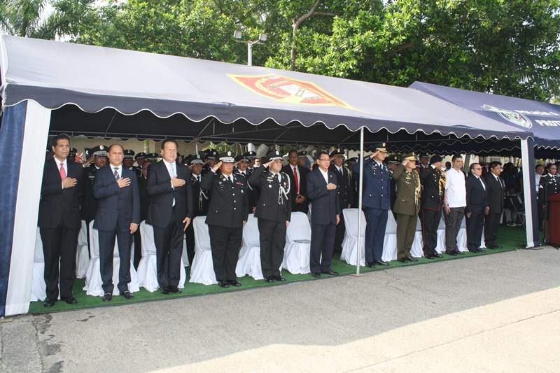 El Excelentísimo señor Presidente de la República, Juan Carlos Varela Rodríguez, presidió este lunes, el acto de ceremonia de ascenso de 3 mil 274 miembros de la Policía Nacional (PN) que pasaron al rango inmediato superior. El gobernante panameño aprovechó el momento para instar a los uniformados a seguir trabajando por el país, como lo han hecho hasta ahora. “Con trabajo arduo disciplina y entrega este grupo de uniformados se han hecho merecedores de estos ascensos”, expresó el Mandatario. Los uniformados fueron bautizados con agua de un carro cisterna del Cuerpo de Bomberos de Panamá, en la tradicional ceremonia de ascensos, como muestra de lo que será nueva etapa laboral. Por su parte, el Excelentísimo señor Ministro de Seguridad Pública, Rodolfo Aguilera dijo que la Policía es una entidad de protección ciudadana y de cambio social que está comprometida con la simplificación de los procesos internos, para prestar un mejor servicio. El respeto a la antigüedad y profesionalismo de cada hombre y mujer de uniforme, han sido los criterios que la Junta Evaluadora de Ascensos ha tomado en consideración para hacer efectivo este proceso, acorde a los lineamientos emanados por el Director General Omar Ariel Pinzón Marín, que buscan la transparencia y el fiel cumplimento a lo establecido en la ley 18, que regula esta institución de seguridad. Durante la ceremonia, el Presidente Varela condecoró al Director Policial con la Medalla “Honor al Mérito”. El anuncio de estos ascensos se realizó el martes 16 de diciembre, a través de la Orden General del Día Extraordinaria No. 236, donde se detalla que 23 subcomisionados ascendieron al rango de comisionados; 16 subcomisionados; 48 mayores; 120 capitanes; 338 tenientes; 499 subtenientes; 544 sargentos 1ro.; 324 sargentos 2do.; 488 cabo 1ro.; y 874 cabos 2do. El ascenso significa un reto más para todas las unidades policiales en seguir trabajando por la comunidad con el mismo grado de responsabilidad, disciplina y entrega, y con la meta de seguir subiendo en rangos y cargos dentro de la Institución. |