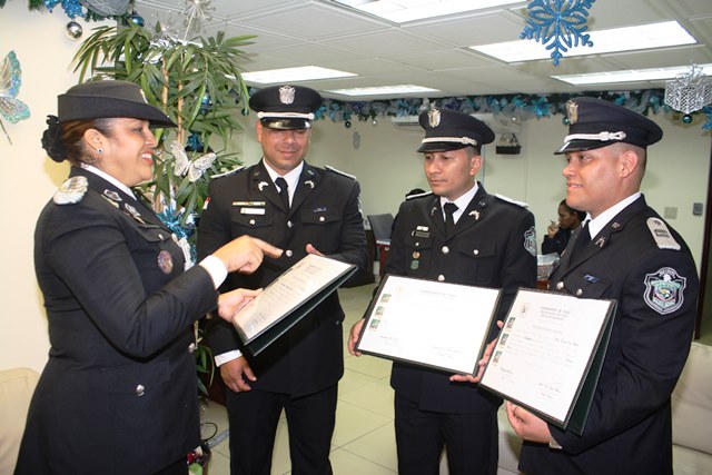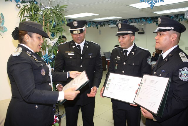 Miembros de la Policía Nacional, recibieron un diplomado en Análisis e Inteligencia Policial, luego de un año retornan al país tras culminar satisfactoriamente el curso llevado a cabo en Santiago, Chile. Se trata del teniente Rubén Díaz, subteniente Marvin Guevara y el subteniente Felipe Alonso quienes formaron parte del Programa de Especialización del Oficial de Carabineros de Chile. Los oficiales se especializaron en diferentes ramas, entre estos investigación criminal e inteligencia, al mismo tiempo temas de aspectos legales e investigativos. La comisionada y secretaria General de la Policía Nacional, Oris Jaén recibió y felicitó a los uniformados por su destacado logro y a su vez los invitó a seguir preparándose para servir a la comunidad.