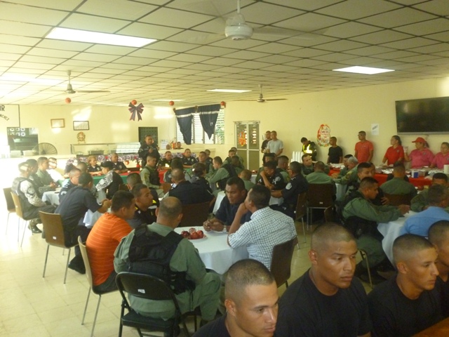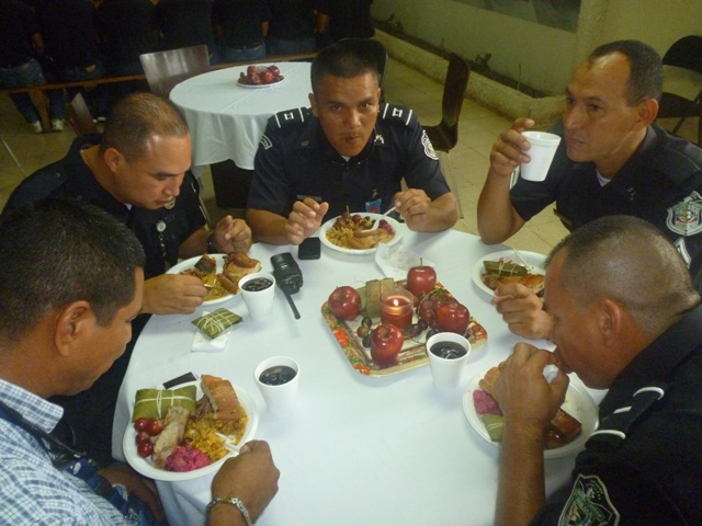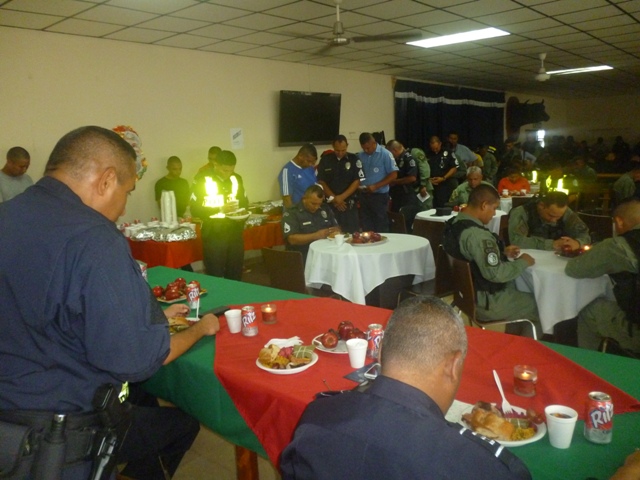 Con los sinceros deseos de hermandad, bendición y éxitos por parte del Comisionado Gilberto Cuevas, jefe de la Zona de Policía de Veraguas, junto a su equipo de trabajo, celebraron la Navidad con una cena en las instalaciones. En esta cena navideña participaron todos los servicios policiales que laboran en la provincia de Veraguas, así como los estudiantes del Instituto Superior de Policía (ISPOL). En medio de canciones populares navideñas y un exquisito menú propio de la ocasión, los uniformados de Veraguas disfrutaron de una agradable tarde navideña. |