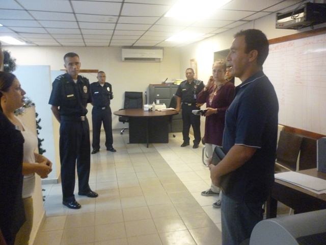 El Comisionado Gilberto Cuevas, jefe de la Zona de Policía de Veraguas, les dio la bienvenida a Funcionarios de la oficina de Asuntos Civiles de la Embajada de los Estados Unidos, quienes visitaron a las distintas oficinas que integran esta institución. La delegación que estaba conformada por capitanes y sargentos, recorrieron las oficinas de Seguridad Ciudadana, Reclutamiento, Planes y Operaciones, y la Clínica de la Zona, en donde fueron recibidos por las unidades policiales que le brindaron información sobre los trabajos que desempeñan en las diversas oficinas. La Teniente Dayana Concepción, encargada de la Oficina de Seguridad Ciudadana, le expresó a los funcionarios su agradecimiento por los conocimiento dados en cuanto a seguridad y relación con la comunidad. |