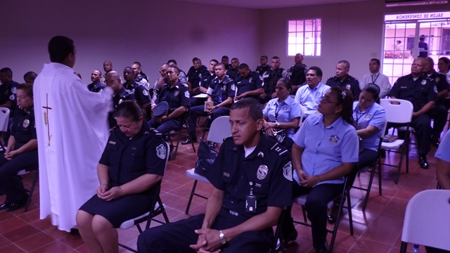 En el salón de conferencias de La Zona de Policía de Herrera, se realizó una misa de acción de gracias, presidida por el Presbítero Daniel Mora, capellán de la zona. En medio de cantos y oraciones, los miembros de la Policía Nacional le dieron gracias a Dios por los logros obtenidos durante el año 2014 y oraron para que el año 2015, los colme de sabiduría y del conocimiento necesario para actuar y atender las diferentes situaciones que se le presenten en su diario vivir. En la ceremonia de oración, estaban unidades de diferentes rangos, de las unidades linces, DIJ, unidades regulares de la zona y personal no juramentado. |