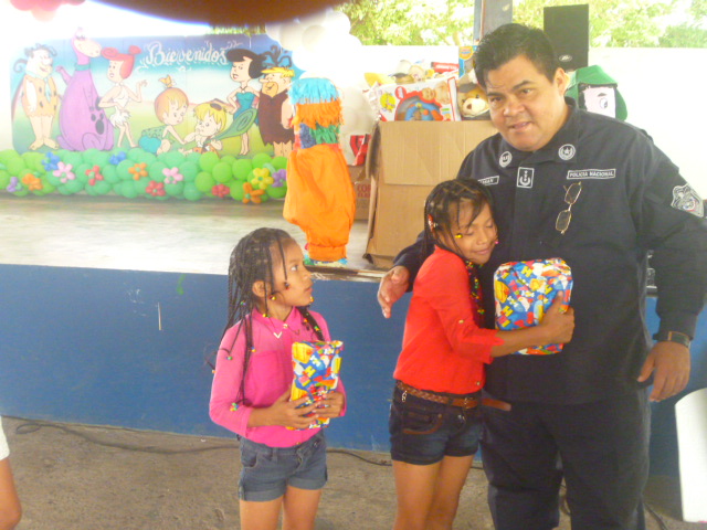 Los niños y niñas, hijos de los miembros de la Policía Nacional en la provincia de Bocas del Toro, tuvieron hoy su fiesta de los Reyes Magos, donde lo que abundó fue diversión. La actividad que empezó a eso del mediodía y culminó a eso de las 4:00 p.m., se repartieron golosinas, frutas, refrescos y regalos para todos. De acuerdo con el Comisionado y jefe de la Zona Policial, Aristides Hassan, este tipo de evento le permite a la institución fortalecer los lazos familiares. “La directriz del señor director Omar Pinzón es buscar el acercamiento y unificación entre todos los que integramos la Policía Nacional”, resaltó Hassan. |